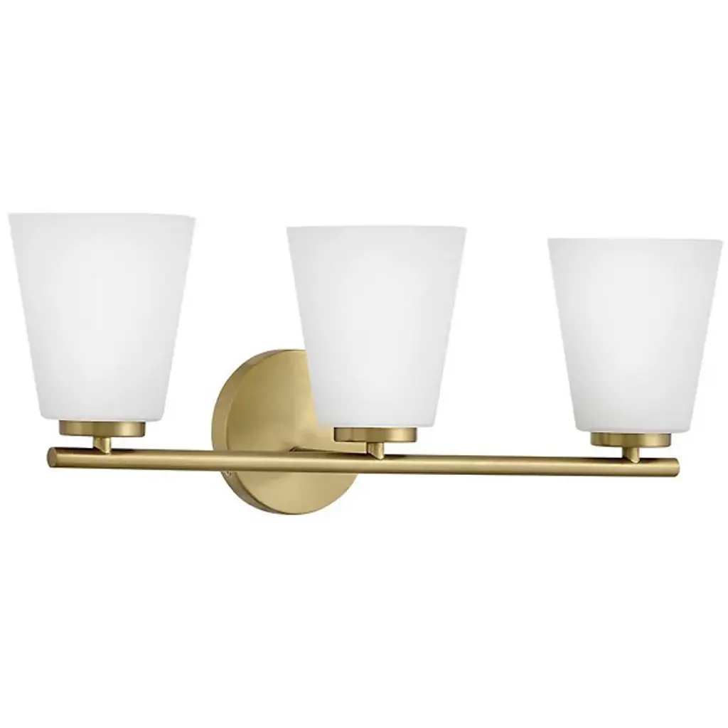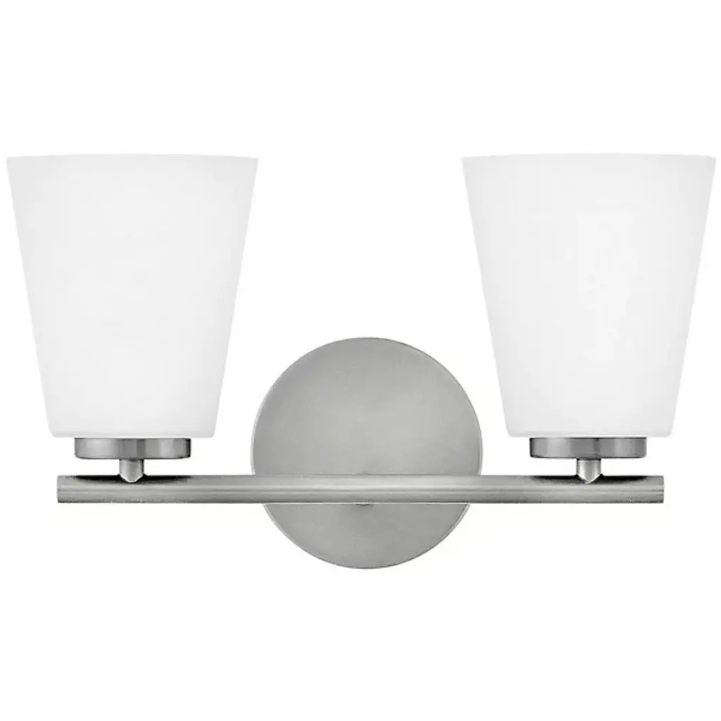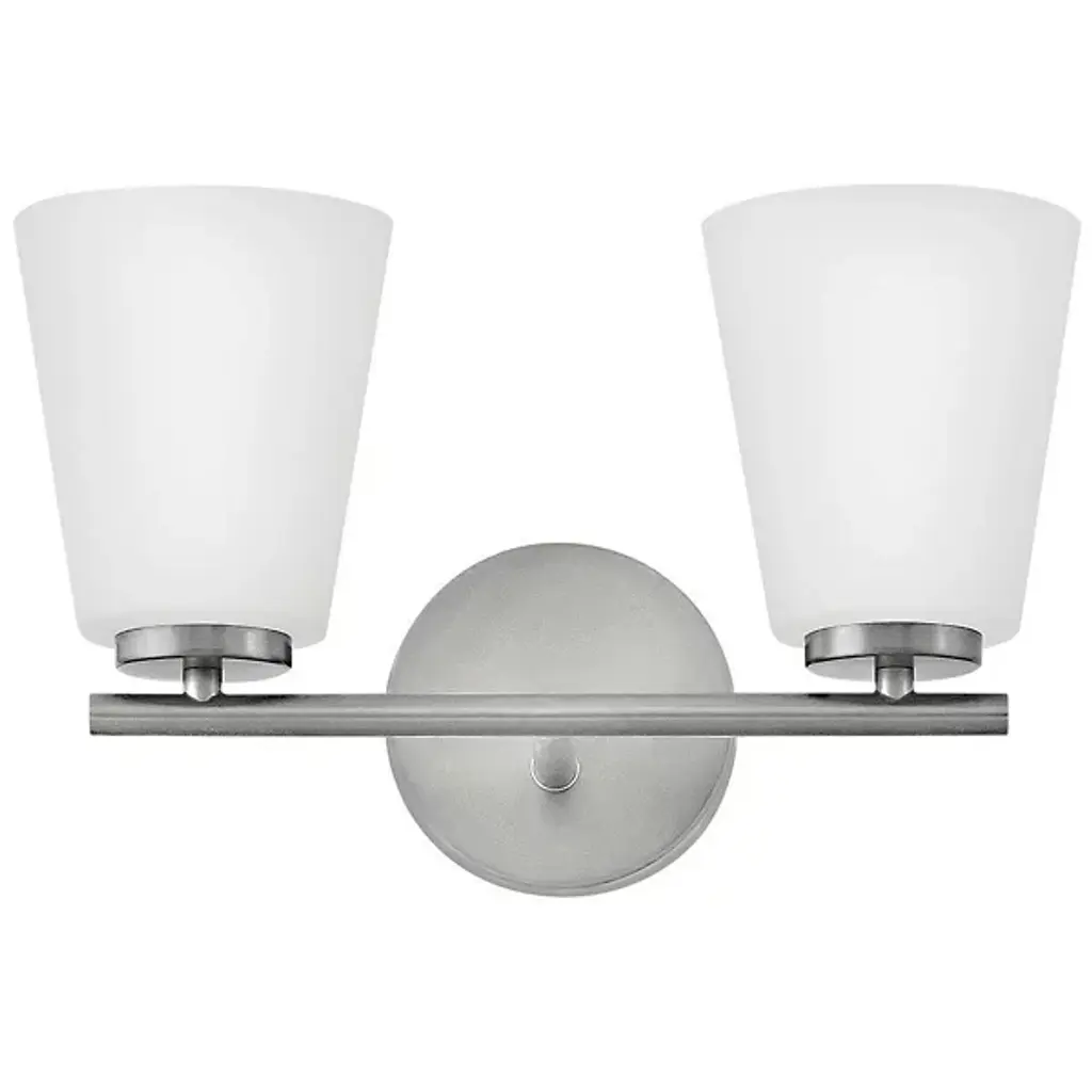 The Bri Bath Bar from Lark embodies stylish versatility with its transitional tapered shade crafted from soft white Etched Opal Glass. This elegant design effortlessly complements any space or décor theme, which enhances aesthetic appeal with timeless elegance. The Bri Wall Sconce integrates into various interior styles, making it an ideal choice for both modern and traditional settings alike. It ensures enduring sophistication and charm in any room.