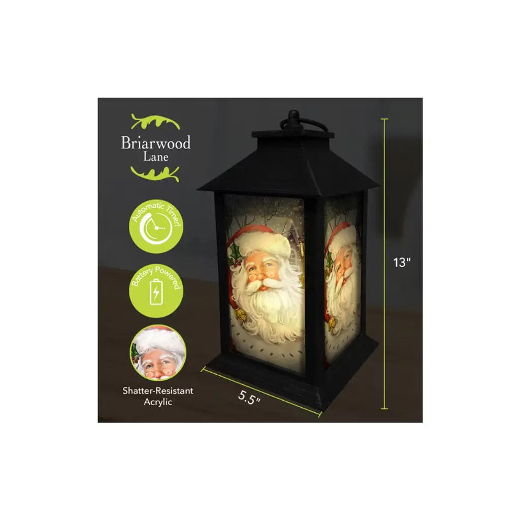 Briarwood Lane Christmas Lantern 13.5" X 5.5" X 5.5" Checkered Santa For Christmas Lantern