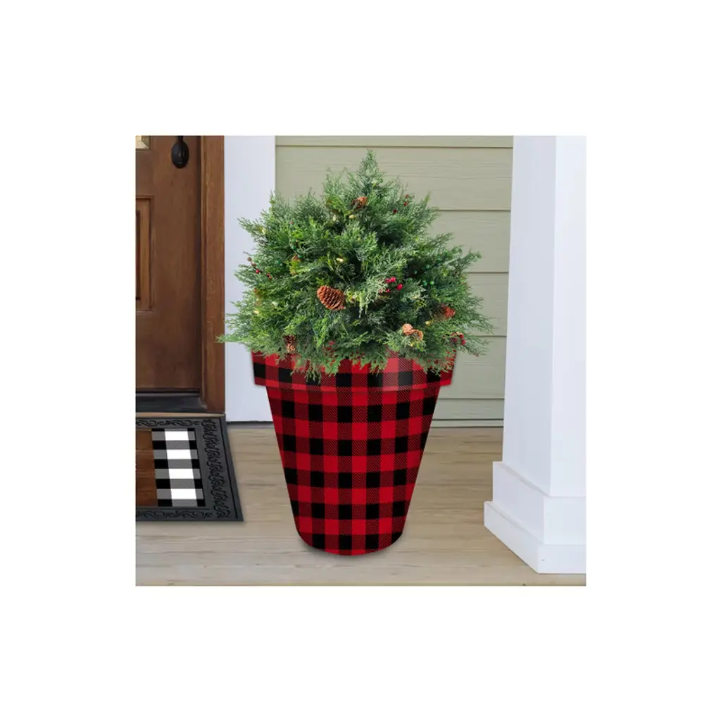 Briarwood Lane Everyday Planter 14" X 15" X 15" Red And Black Buffalo Check Large Planter