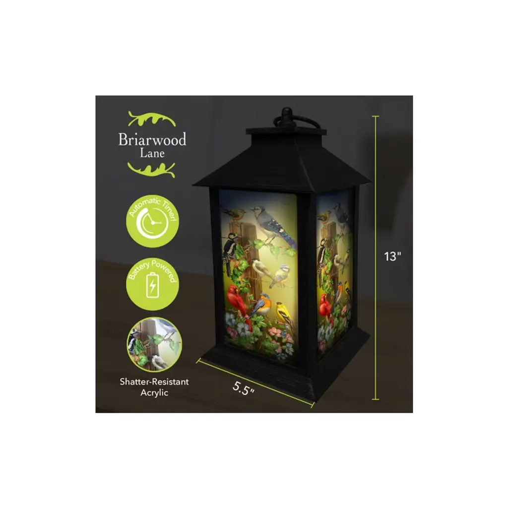 Measures 13.5" x 5.5" x 5.5". Transform your home with the enchanting Briarwood Lane Decorative Art Lantern. Each lantern seamlessly merges practicality with the captivating original artwork from the Briarwood Lane collection. An inviting soft glow LED candle casts a gentle and warm light upon seasonally inspired designs, carefully crafted by some of America's finest artists. Whether adorning your porch or creating an inviting indoor ambiance the Art Lantern harmonizes with your existing Briarwood Lane products. About The Manufacturer: Proudly based in Southern New Jersey, Briarwood Lane has been a leader in the design and manufacturing of premium quality home and garden decor since 2014. Our cheerful, affordable and weather-resistant seasonal products feature exclusive artwork from America’s finest artists and are carefully crafted to last all season...