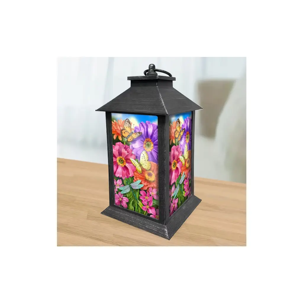Briarwood Lane Spring Lantern 13.5" X 5.5" X 5.5" Zinnias In Bloom For Spring Lantern