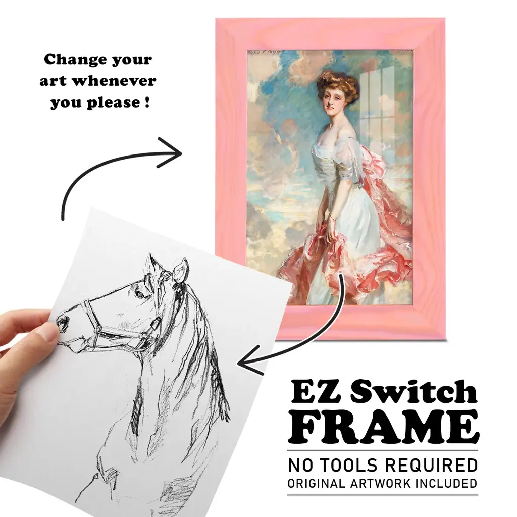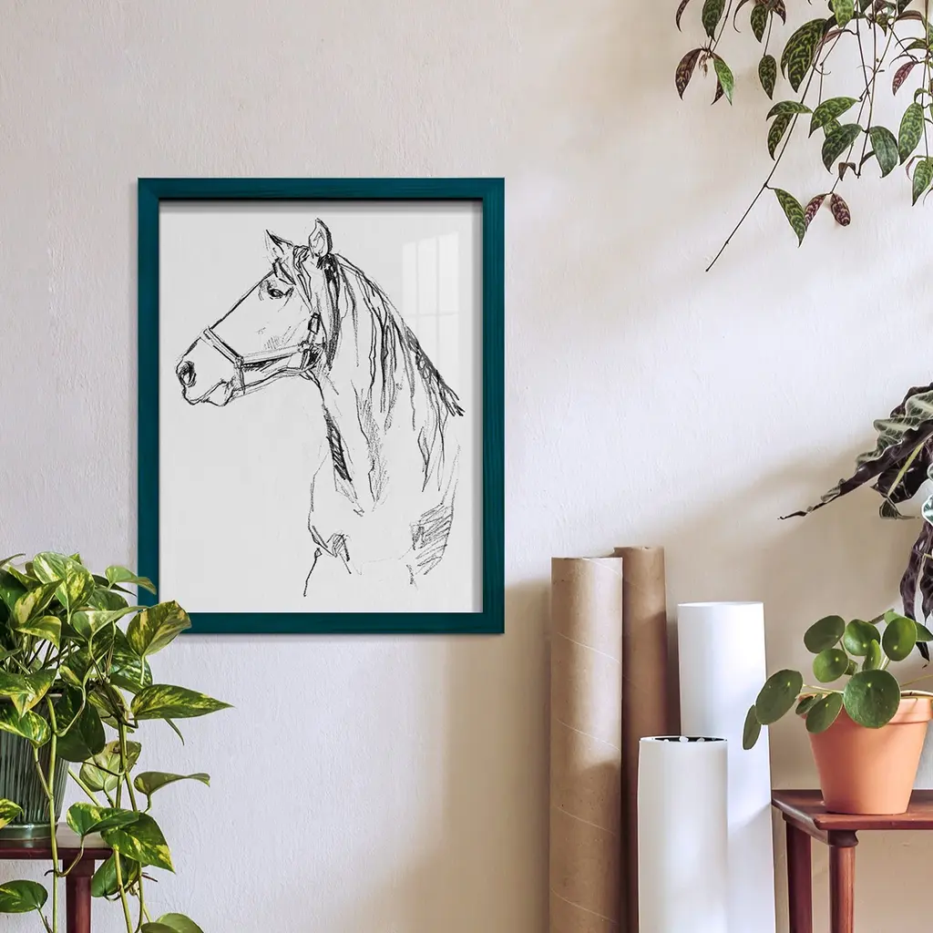 Bridle Portraits I -EZ SWITCH Framed Print w/glass-Cherry Red A delightful, framed print. Featuring a solid wood frame with real wood glass. This premium print is giclee quality. In addition, every frame features a removable back and table top stand. This allows you to change your art in the future or to just stand the art on a table for a new look. We are sure you'll enjoy our new series of EZ SWITCH Framed Art. Solid Wood Frame Real Glass Removable / Replaceable Art Built in Tabletop Stand Sizes range from 4x6 up to 12x15 - buy just one or pair them up as sets as you see fit.