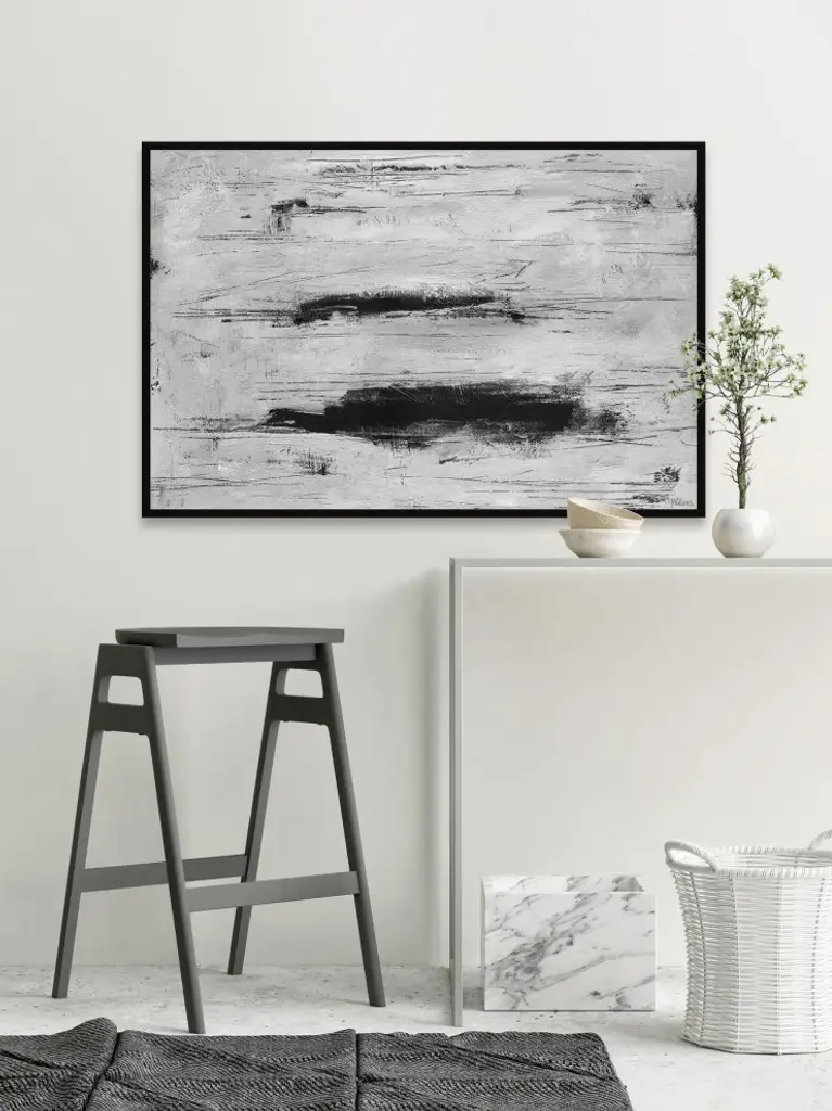 Bring a more modern feel to your wall with this acrylic painting print that features a black and gray abstract design. The wide range of brush strokes and various hues in this print will add an artistic vibe to your space. Proudly printed in the USA, this piece is printed on canvas before it''s stretched, and framed and mounted in a non-warping floater frame thereafter. With wall-mounting hooks included, this artful accent is ready to hang up as soon as it reaches your front door.Canadian artist, Parvez Taj uses water paints, photographs, software, and UV cured inks to create his wall art. His artwork connects the out-of-reach luxury art world with the modern, fashion-conscious home decorator by delivering high quality artwork that is both affordable and hip.Durable art print on high quality canvas by Parvez TajProfessionally hand stretchedFramed and mounted in non-warping floater frameArrives ready to hangIncludes a certificate of authenticityArtist signature on the front