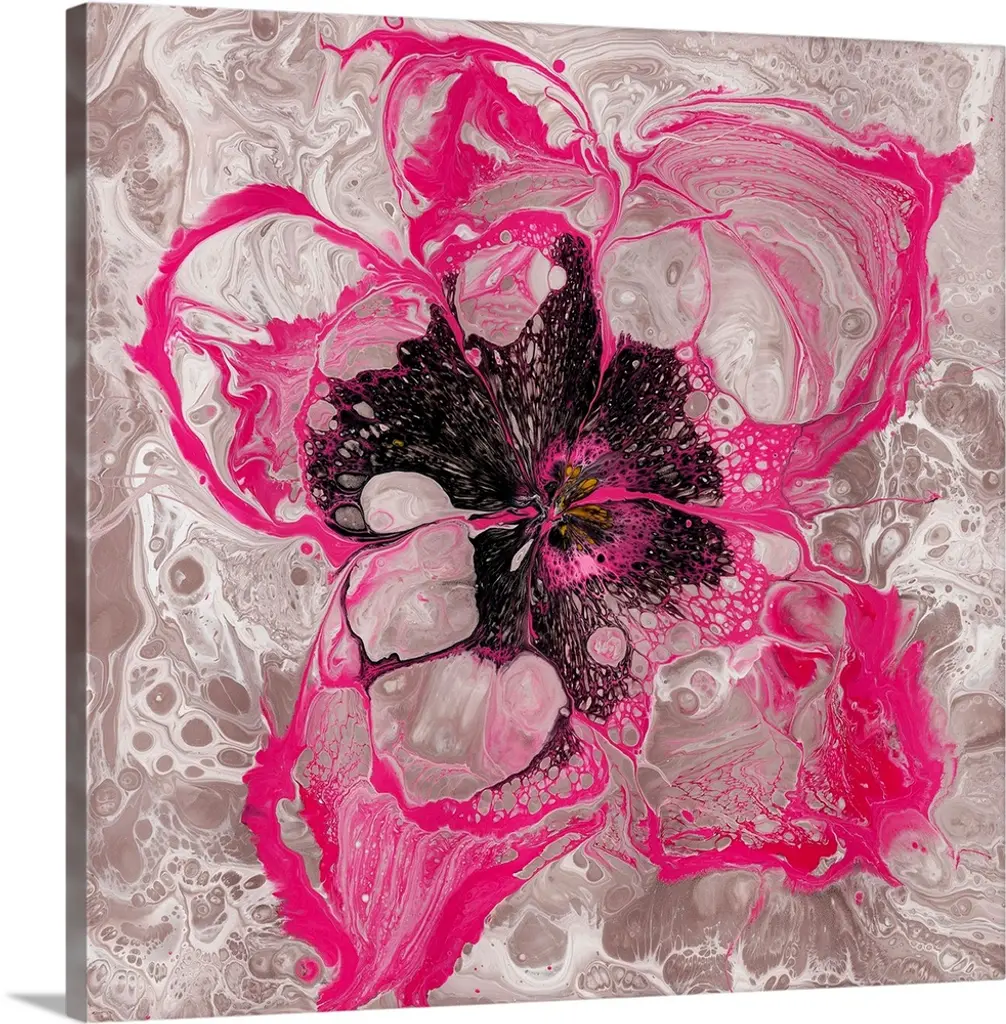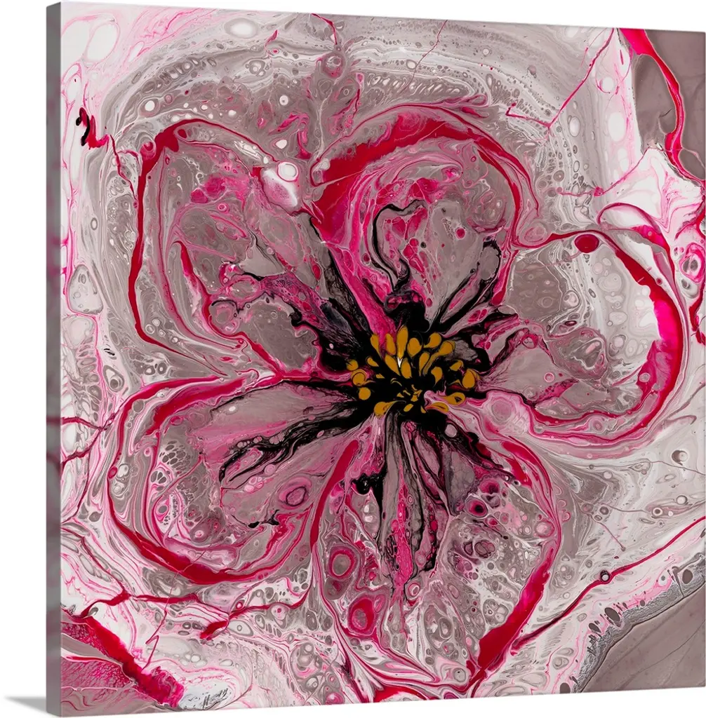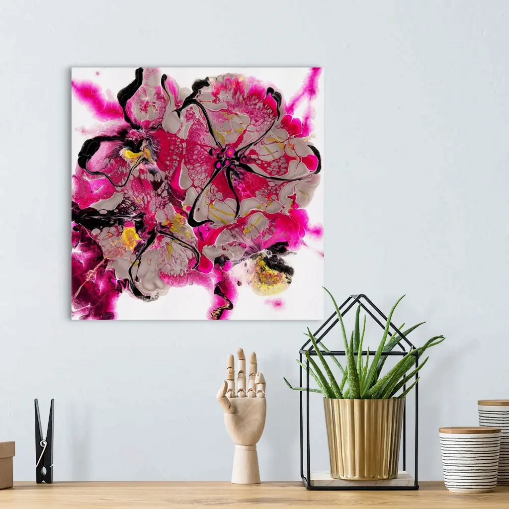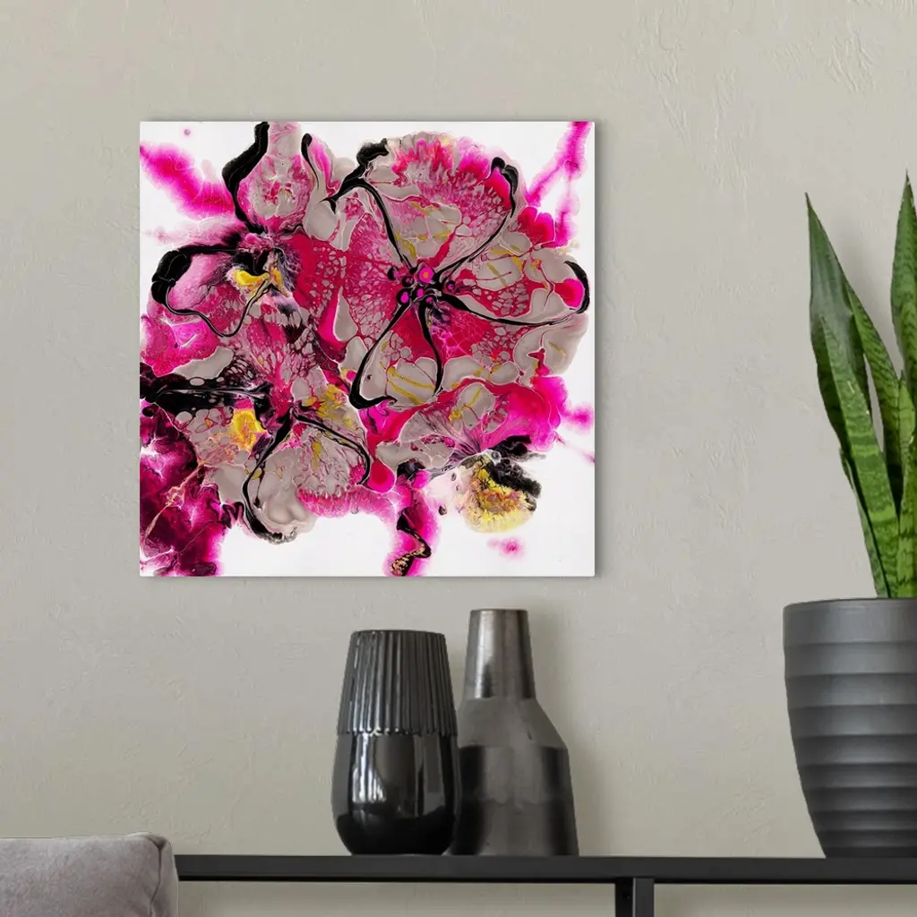 Pour painting of an intense cherry bloom in highly-saturated pink that melts away at the edges, capturing its transience.