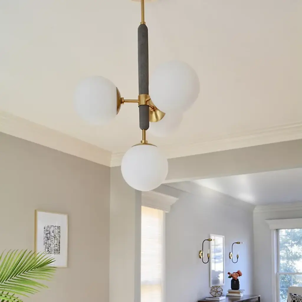 A powerful mid-century inspired look with a compositional presence that inspires. The Brielle 4-Light Pendant by Mitzi uses a striking vintage-inflected look with four individual frosted Glass globes that emit a clean ambient glow designed to create vibrance without overpowering existing architectural elements. Each is mounted on a Metal frame that is accented with a round concrete cylinder to accent its transitional look and feel. It’s a subtle look despite its standout profile and engaging characteristics. This unique and smart piece is designed to fill in open floor plan spaces, especially entryways, dining rooms, master bathrooms, and more.
