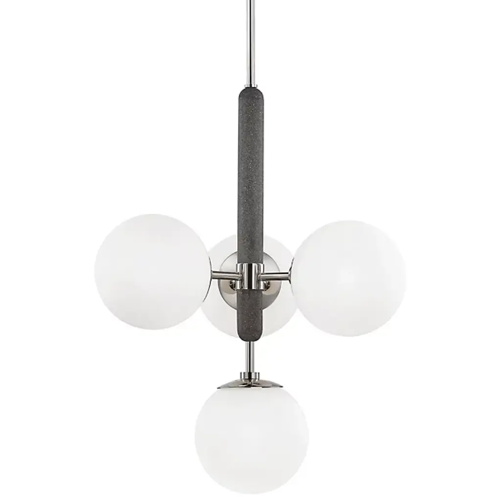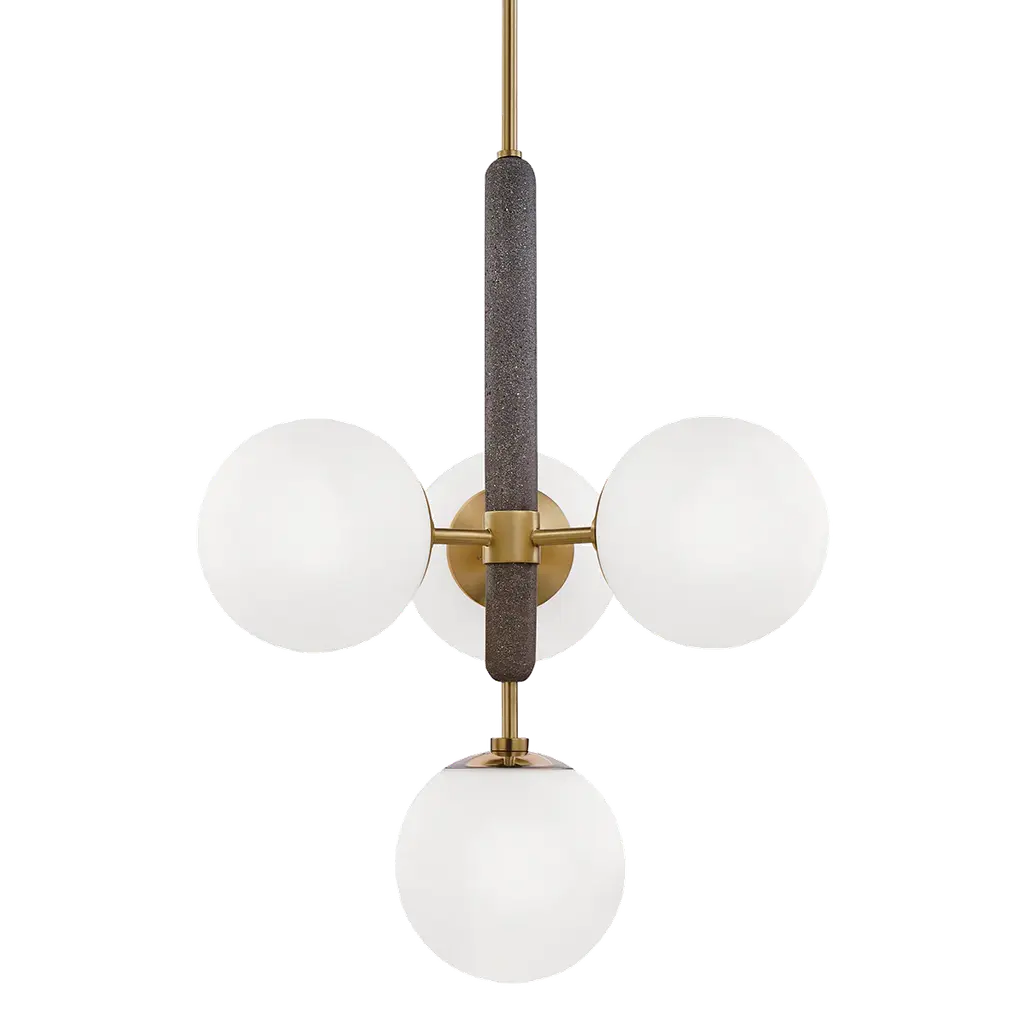 A powerful mid-century inspired look with a compositional presence that inspires. The Brielle 4-Light Pendant by Mitzi uses a striking vintage-inflected look with four individual frosted Glass globes that emit a clean ambient glow designed to create vibrance without overpowering existing architectural elements. Each is mounted on a Metal frame that is accented with a round concrete cylinder to accent its transitional look and feel. It’s a subtle look despite its standout profile and engaging characteristics. This unique and smart piece is designed to fill in open floor plan spaces, especially entryways, dining rooms, master bathrooms, and more.