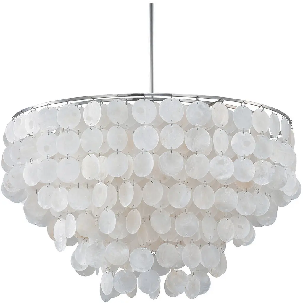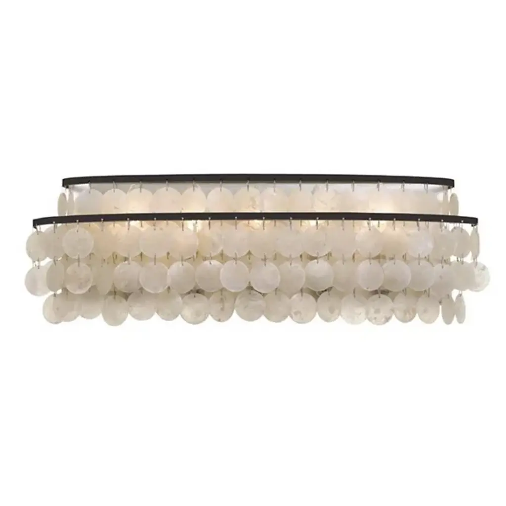 Capturing the wonder of the sea is the opulent Brielle Vanity Light from Crystorama. It dazzles with a design of hanging Capiz Shells, cut into clean circular shapes and ordered around a sweeping tiered framework. Traditionally-styled candelabra bulbs nestled inside the sophisticated design radiate a pleasant warm glow that elegantly sifts through the textural and translucent forms. The piece exudes an elegant, ornate quality that you will truly appreciate in your bathroom.