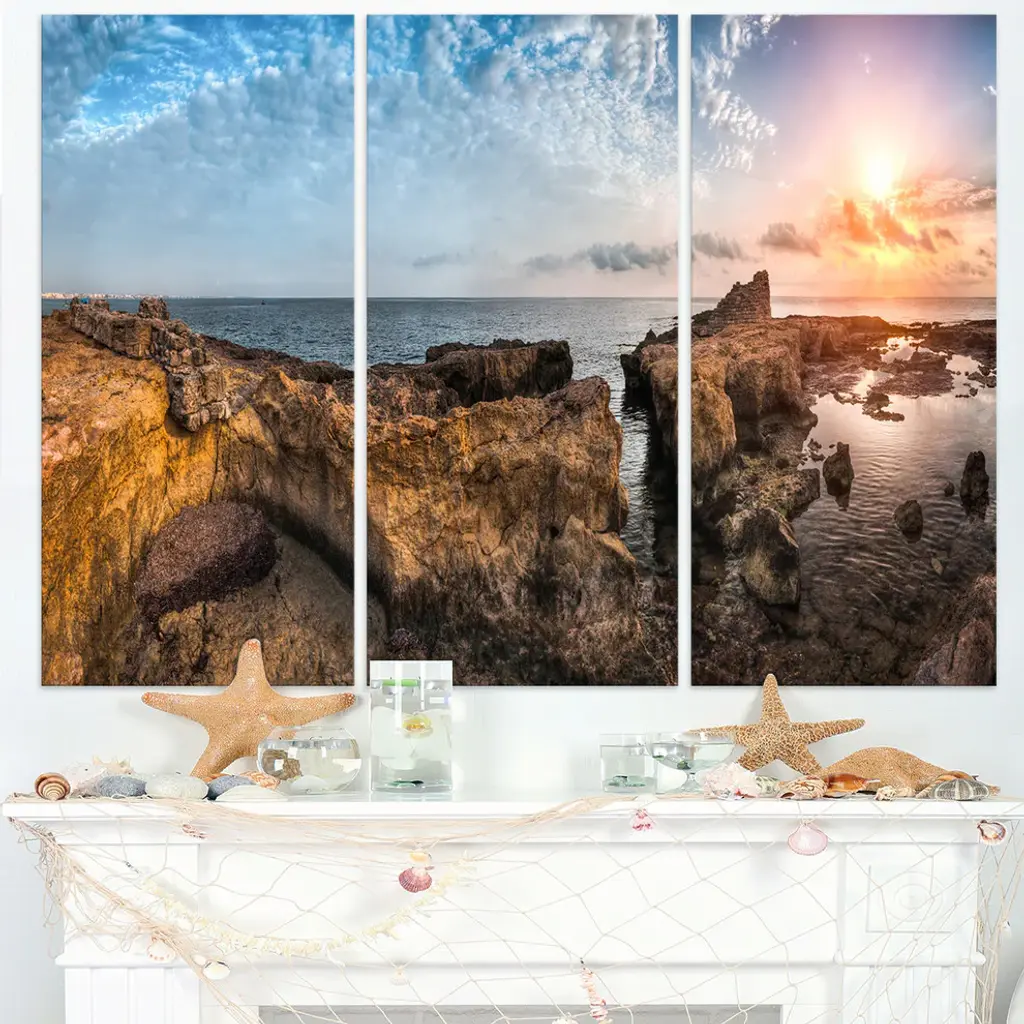 "Bright African Seashore Panorama" Metal Wall Art, 3 Panels, 36"x28"