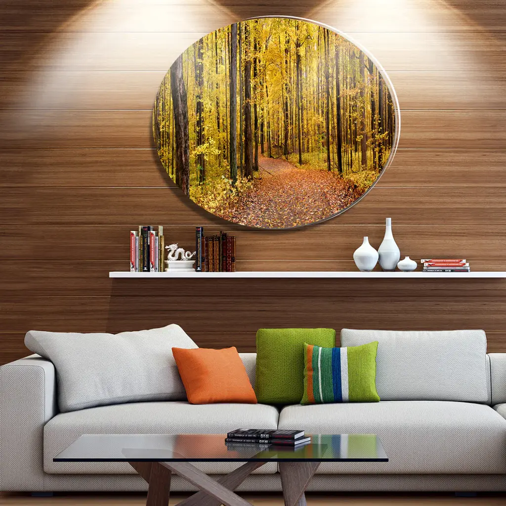 Bright Autumn Forest Panorama, Modern Forest Round Metal Wall Art, 23"