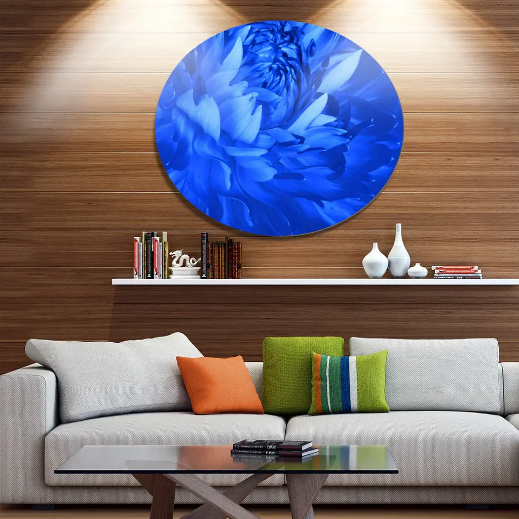 Bright Blue Flower Petals, Modern Floral Disc Metal Artwork, 23"