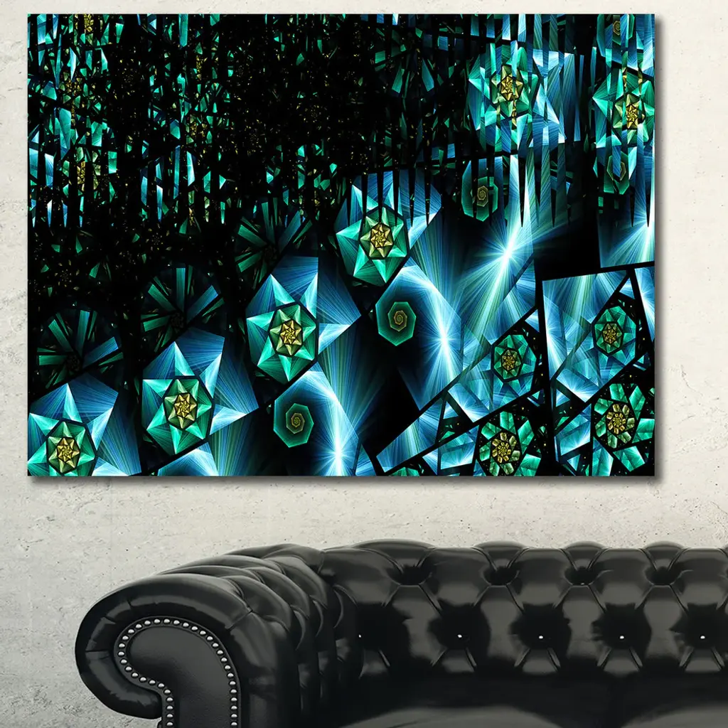 Bright Blue Fractal Flowery Sky, Oversized Abstract Canvas Art Print, 60x40