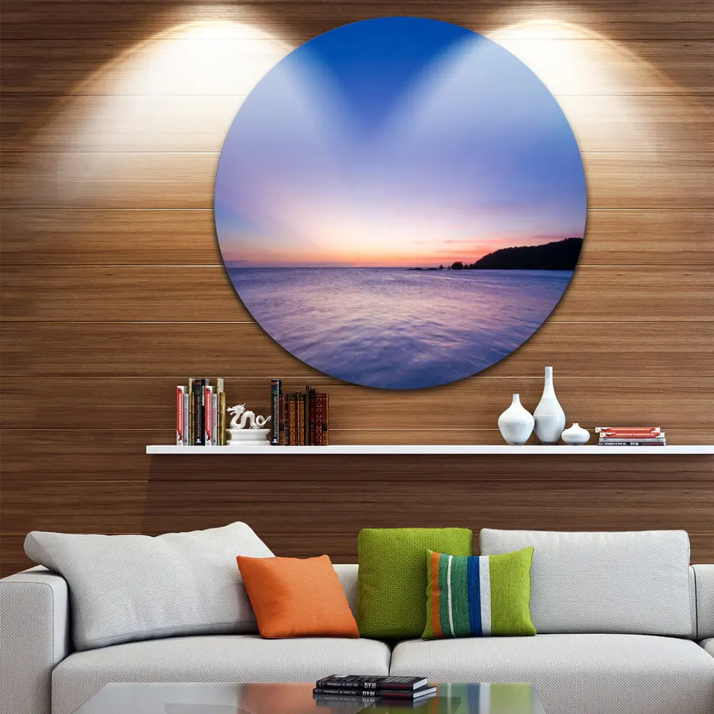 Bright Blue Sky And Waters At Sunset, Seashore Disc Metal Wall Art, 36"