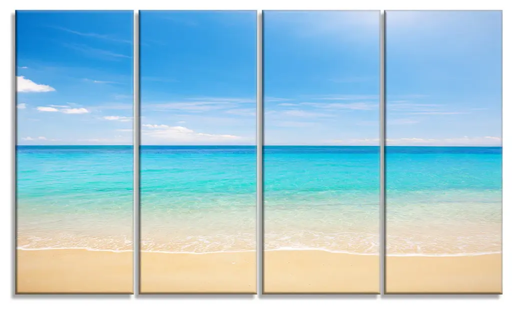 "Bright Blue Tropical Beach" Seashore Canvas Photo Print, 4 Panels, 48"x28"