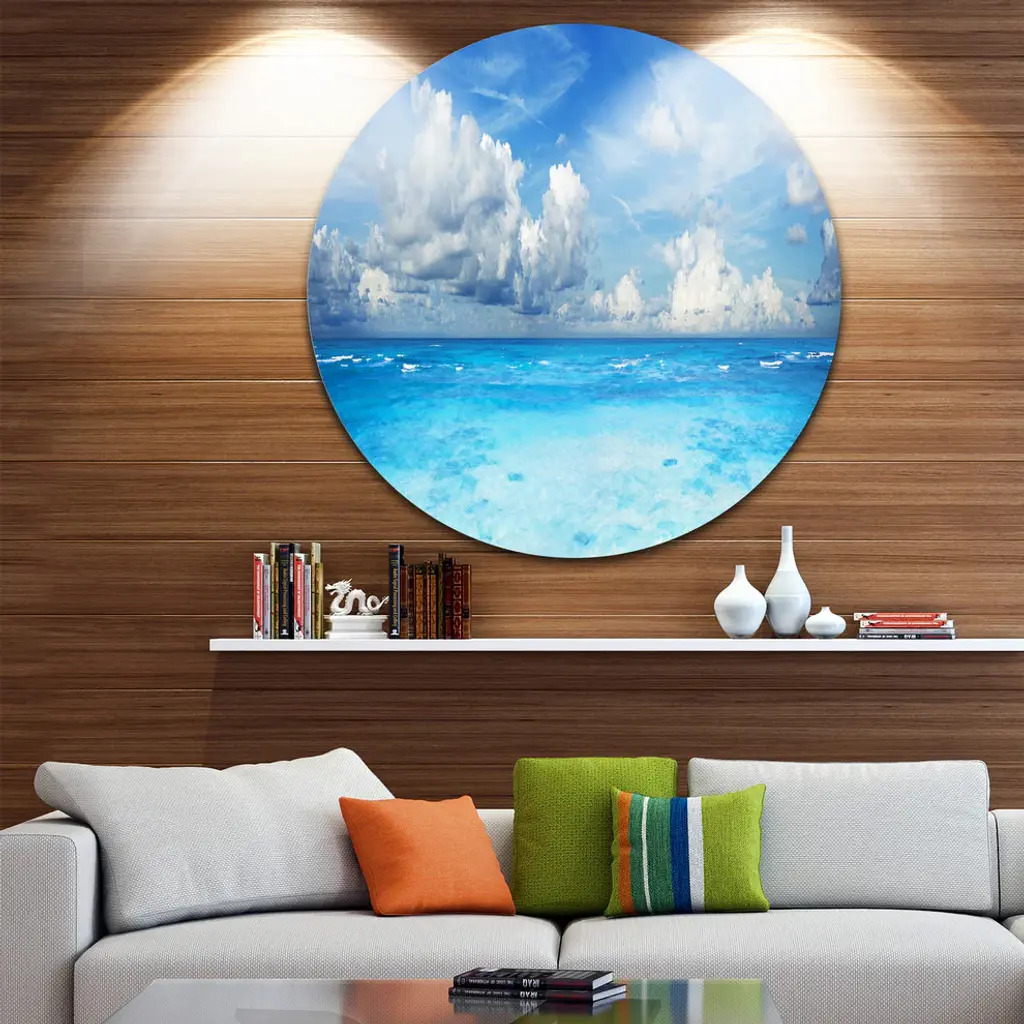 Bright Blue Waters And Sky Panorama, Seascape Disc Metal Wall Art, 11"