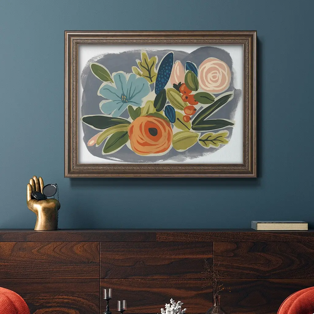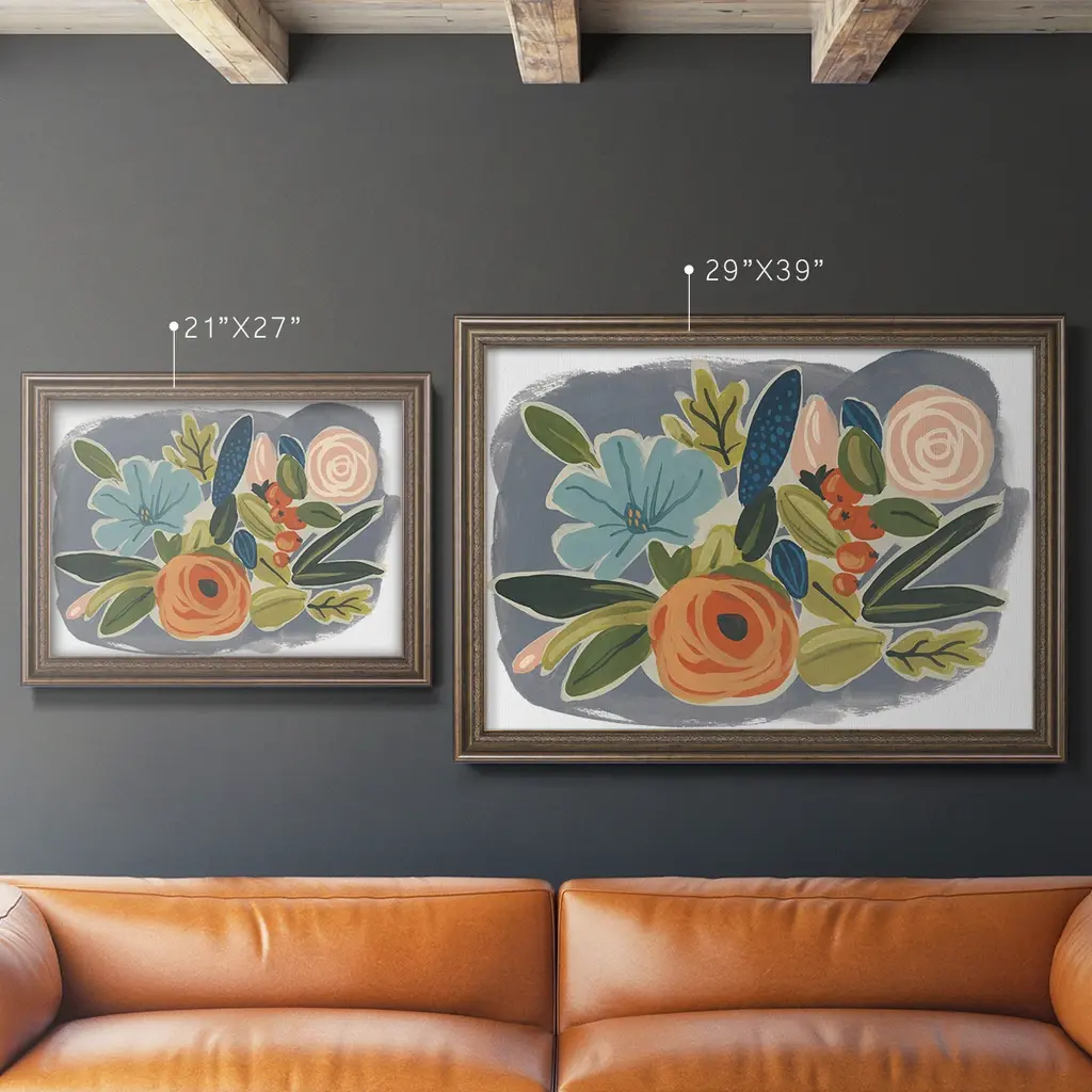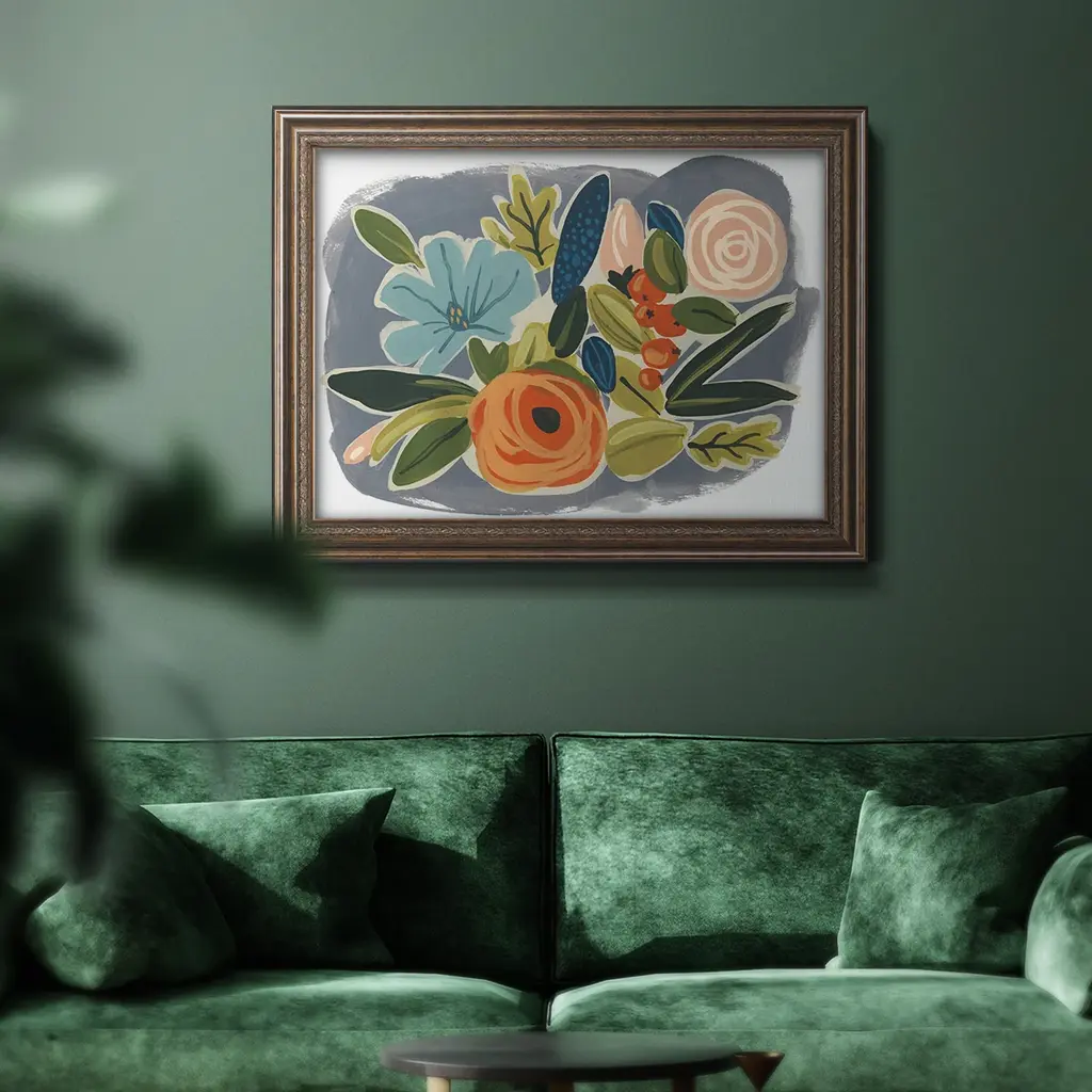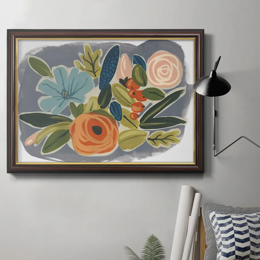 Bright Botany I Premium Framed Canvas- Ready to Hang A Premium Framed Canvas created to last. Framed in distressed wood and available in an array of sizes and colors Featuring a beveled a solid wood stretcher bar, each piece comes ready to hand 3 SIZES AVAILABLE 16''X20'' - Overall Size 18'X27'' - Overall Size 24''x36'' - Overall Size Each piece is made to order. Each piece comes with hanging hardware. Made in the USA Ready to Hang Giclee Paper Print Acrylic Glass Beveled Matt Board