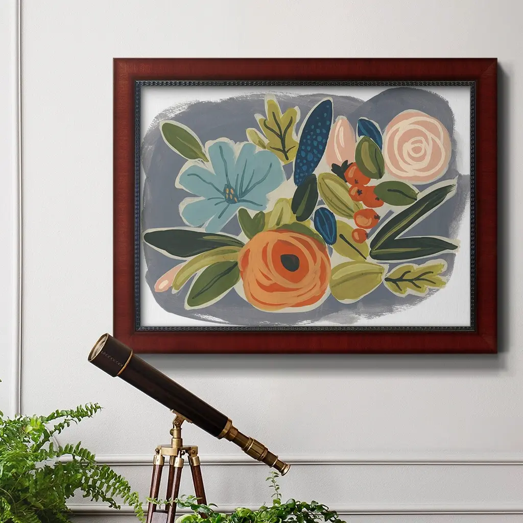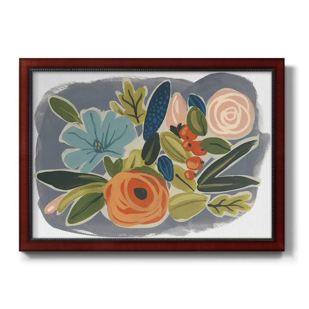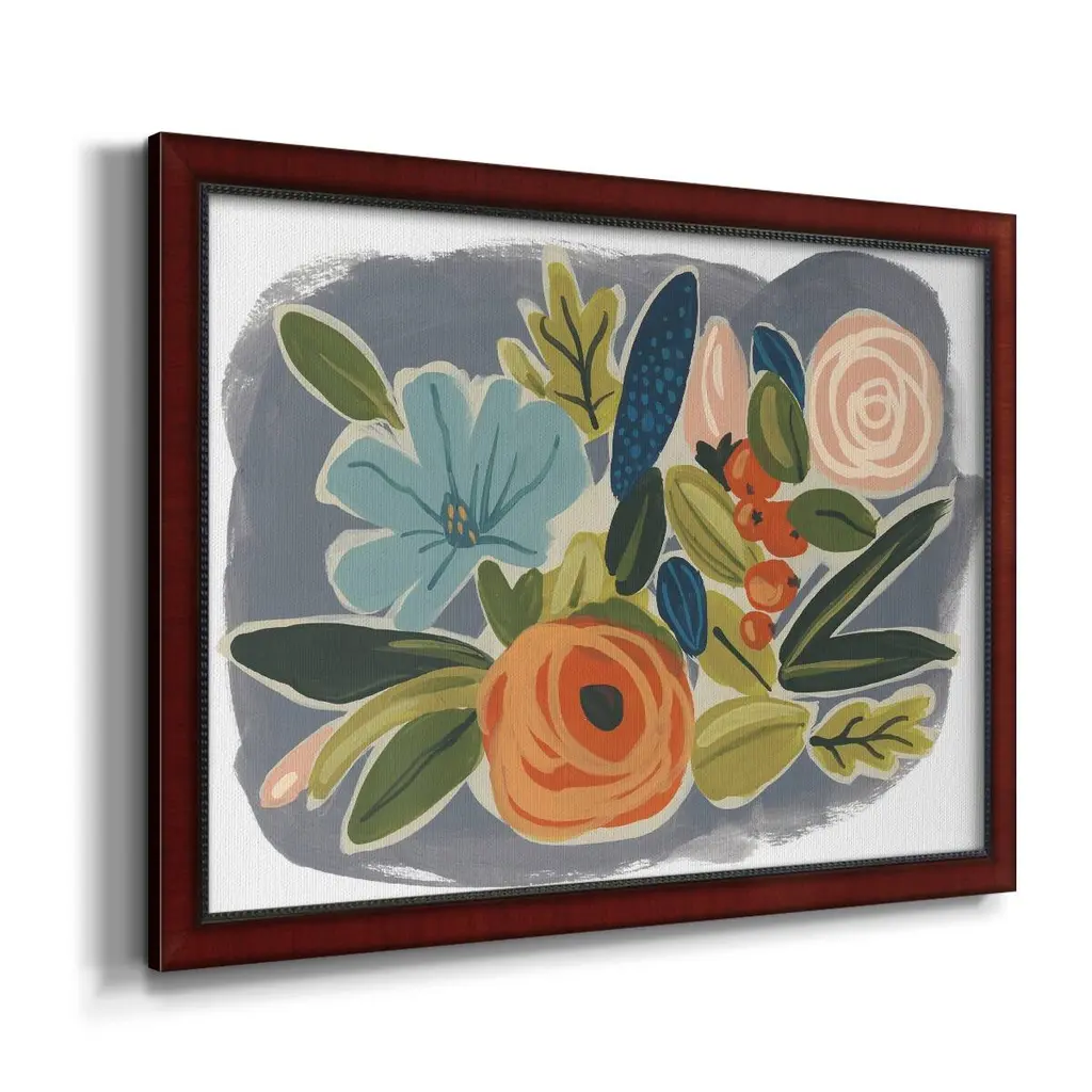 Bright Botany I Premium Framed Canvas- Ready to Hang A Premium Framed Canvas created to last. Framed in distressed wood and available in an array of sizes and colors Featuring a beveled a solid wood stretcher bar, each piece comes ready to hand 3 SIZES AVAILABLE 16''X20'' - Overall Size 18'X27'' - Overall Size 24''x36'' - Overall Size Each piece is made to order. Each piece comes with hanging hardware. Made in the USA Ready to Hang Giclee Paper Print Acrylic Glass Beveled Matt Board