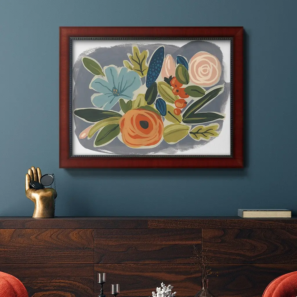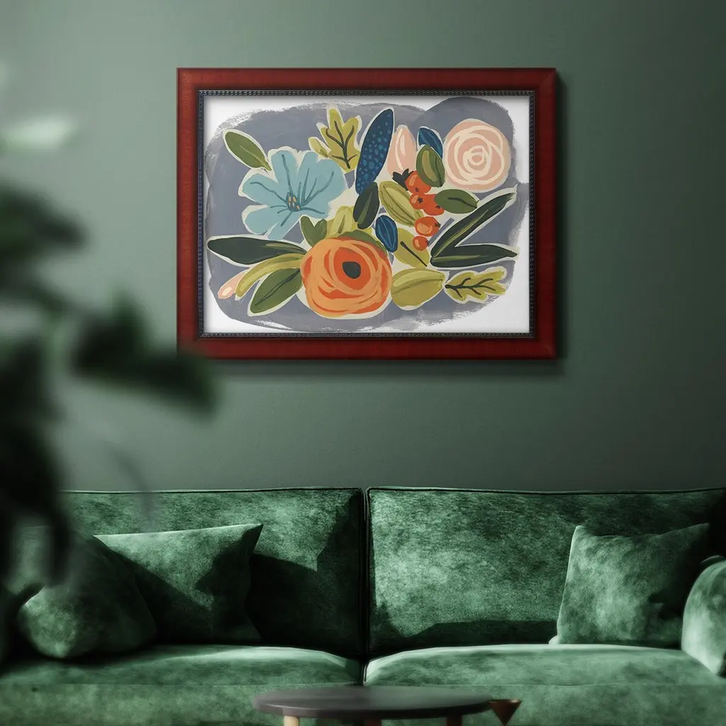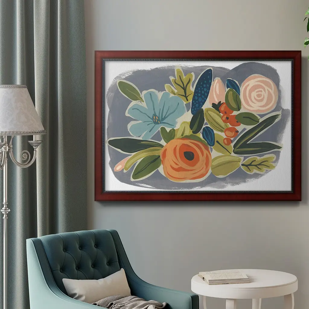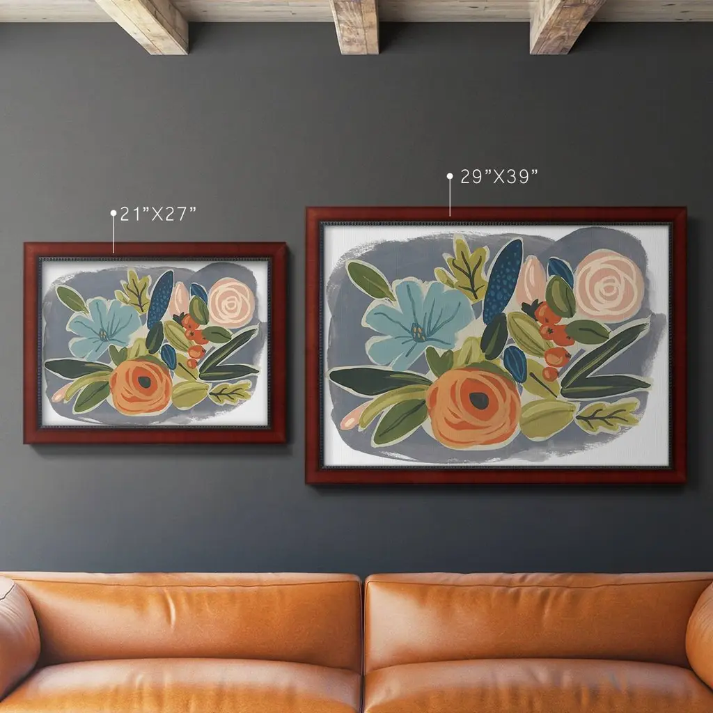Bright Botany I Premium Framed Canvas- Ready to Hang A Premium Framed Canvas created to last. Framed in distressed wood and available in an array of sizes and colors Featuring a beveled a solid wood stretcher bar, each piece comes ready to hand 3 SIZES AVAILABLE 16''X20'' - Overall Size 18'X27'' - Overall Size 24''x36'' - Overall Size Each piece is made to order. Each piece comes with hanging hardware. Made in the USA Ready to Hang Giclee Paper Print Acrylic Glass Beveled Matt Board