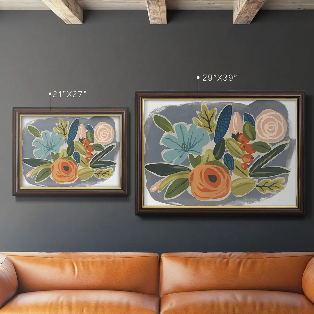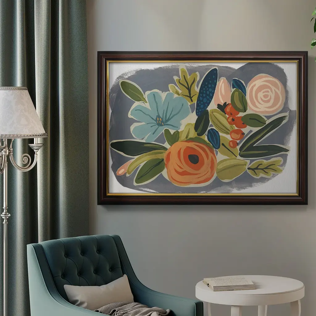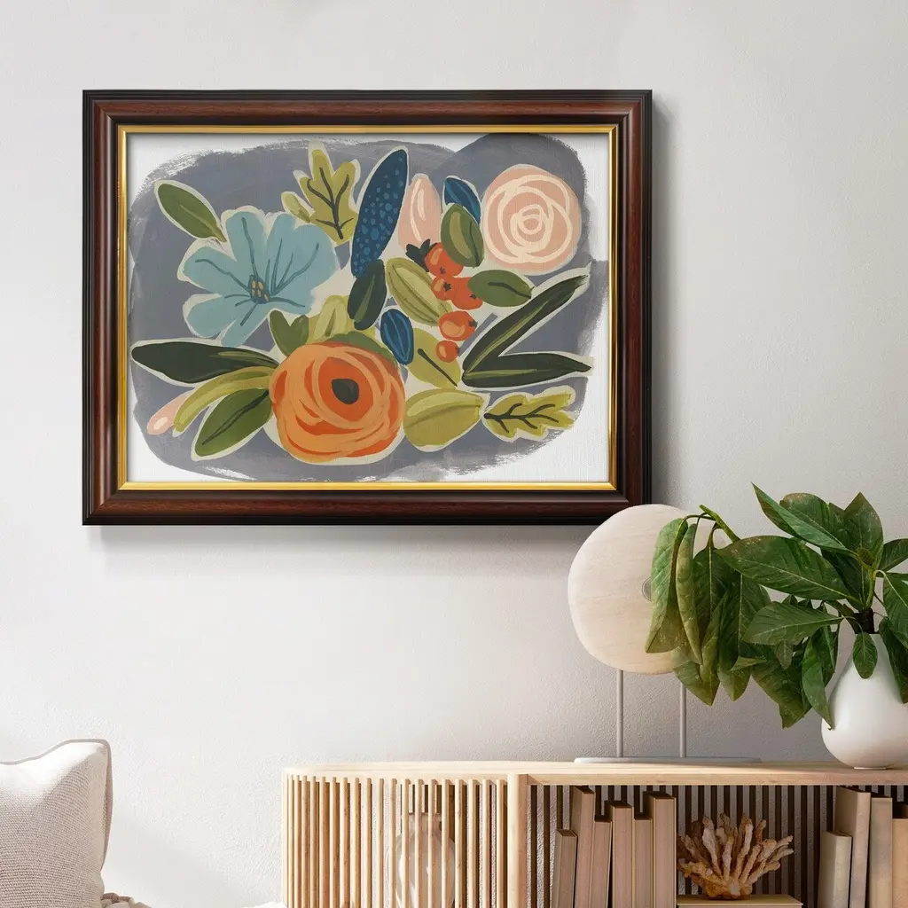 Bright Botany I Premium Framed Canvas- Ready to Hang A Premium Framed Canvas created to last. Framed in distressed wood and available in an array of sizes and colors Featuring a beveled a solid wood stretcher bar, each piece comes ready to hand 3 SIZES AVAILABLE 16''X20'' - Overall Size 18'X27'' - Overall Size 24''x36'' - Overall Size Each piece is made to order. Each piece comes with hanging hardware. Made in the USA Ready to Hang Giclee Paper Print Acrylic Glass Beveled Matt Board