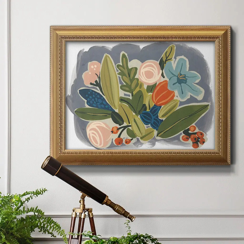 Bright Botany II Premium Framed Canvas- Ready to Hang A Premium Framed Canvas created to last. Framed in distressed wood and available in an array of sizes and colors Featuring a beveled a solid wood stretcher bar, each piece comes ready to hand 3 SIZES AVAILABLE 16''X20'' - Overall Size 18'X27'' - Overall Size 24''x36'' - Overall Size Each piece is made to order. Each piece comes with hanging hardware. Made in the USA Ready to Hang Giclee Paper Print Acrylic Glass Beveled Matt Board