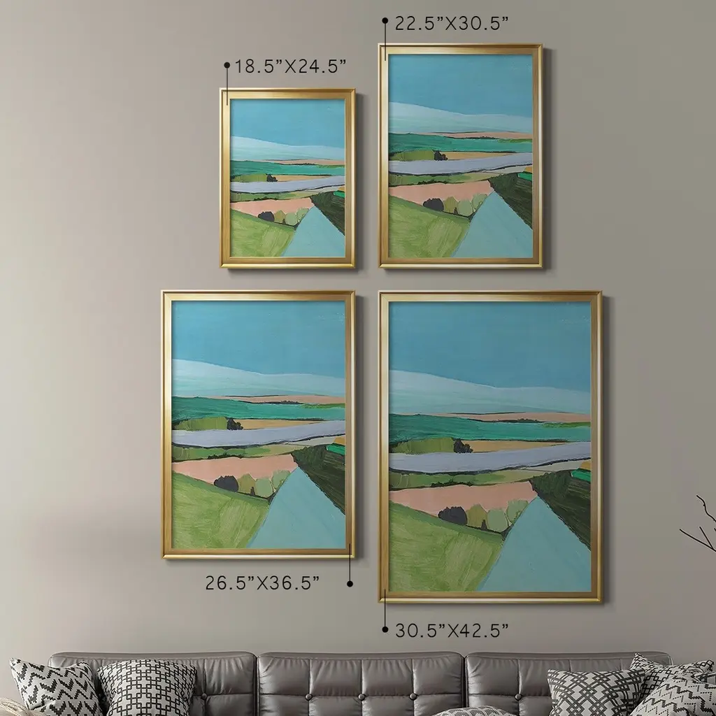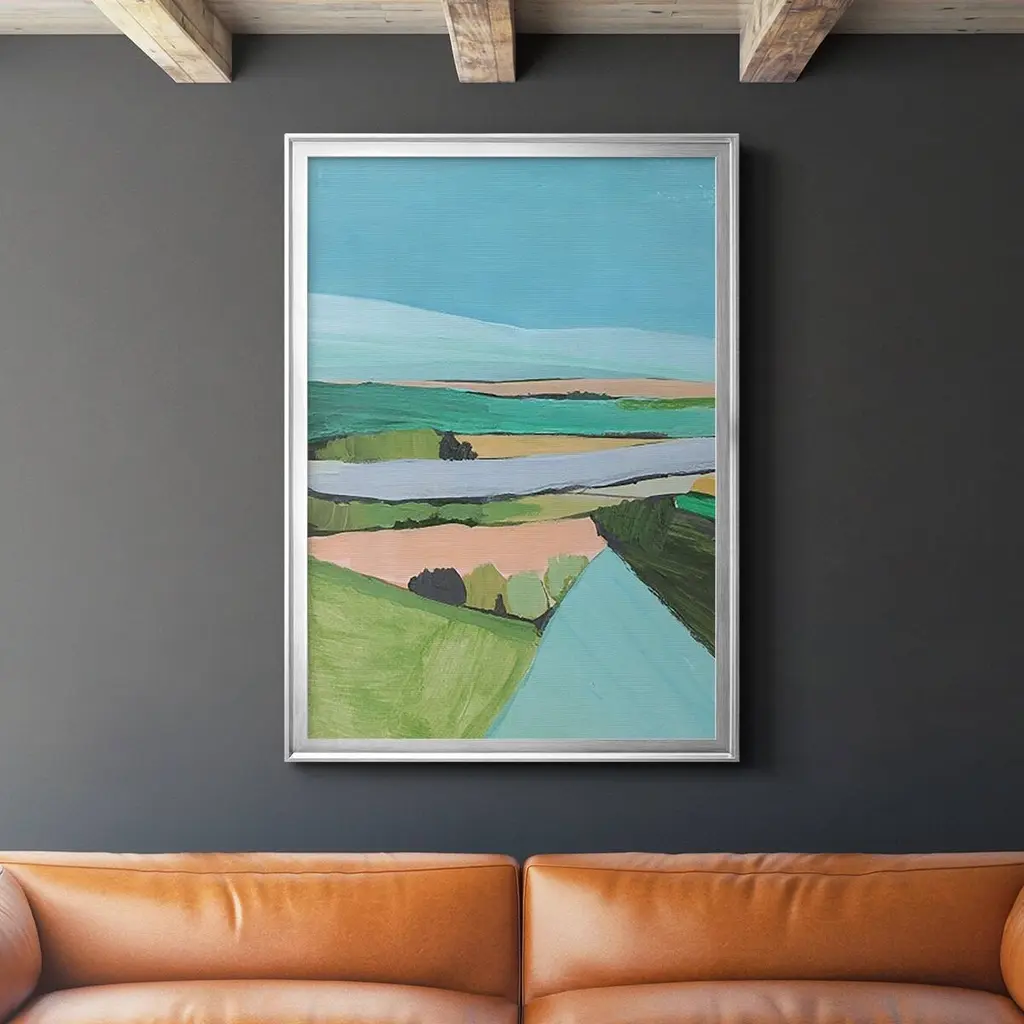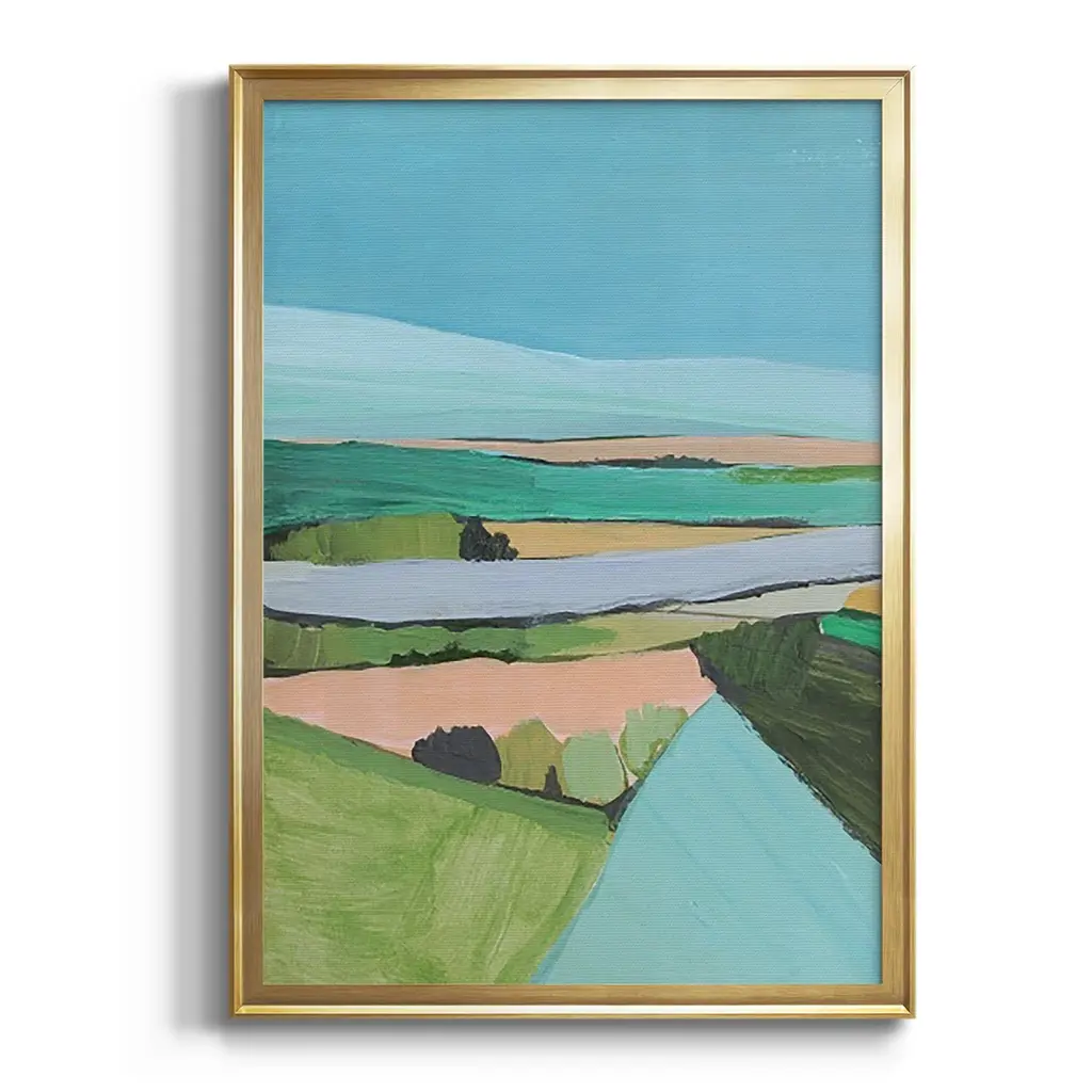 Bright Colored Countryside I Premium Framed Print - Ready to Hang A Premium Framed Print created to last. Framed in distressed wood and available in an array of sizes and colors Featuring a beveled a solid wood stretcher bar, each piece comes ready to hand 4 SIZES AVAILABLE 30.5''X42.5'' - Overall Size 26.5'X36.5'' - Overall Size 22.5''x30.5'' - Overall Size 18.5''x24.5'' - Overall Size Each piece is made to order. Each piece comes with hanging hardware. Made in the USA Ready to Hang