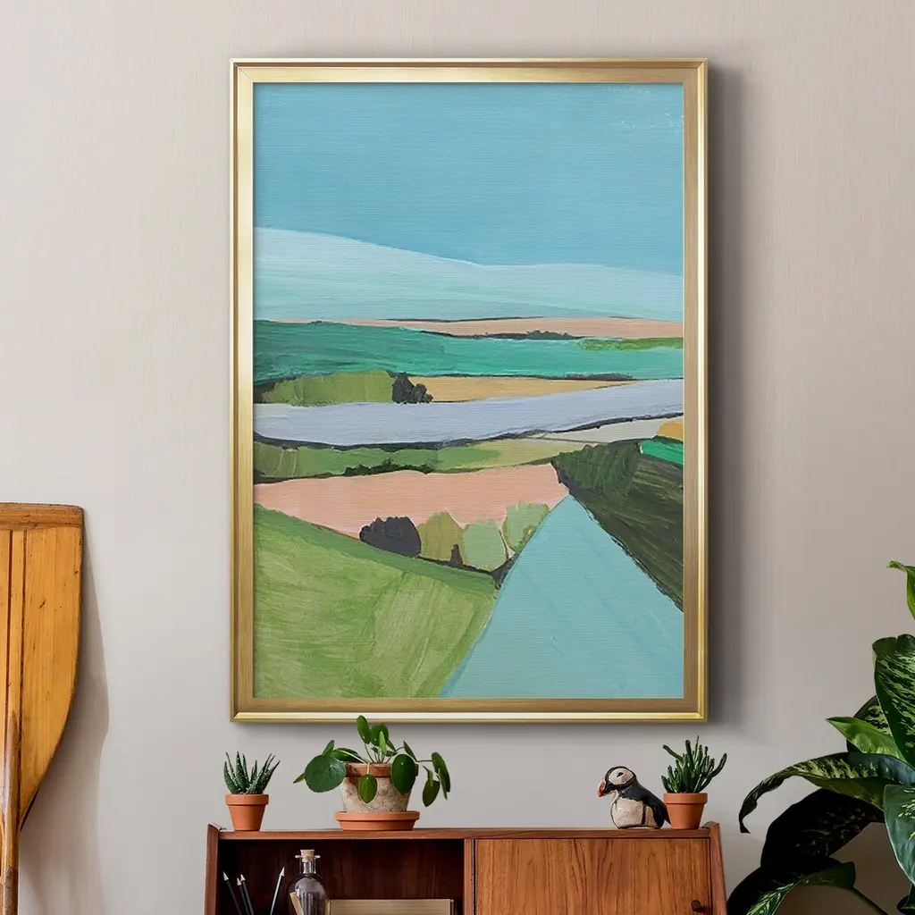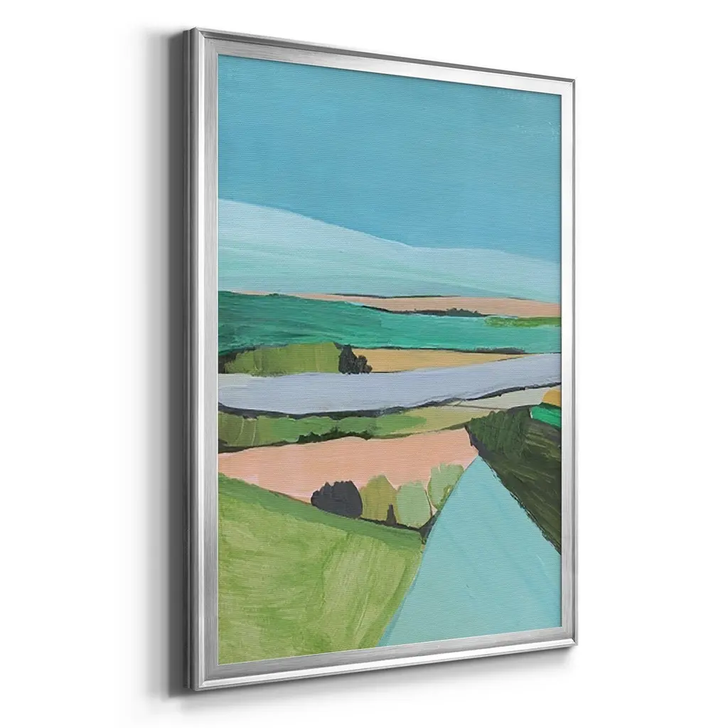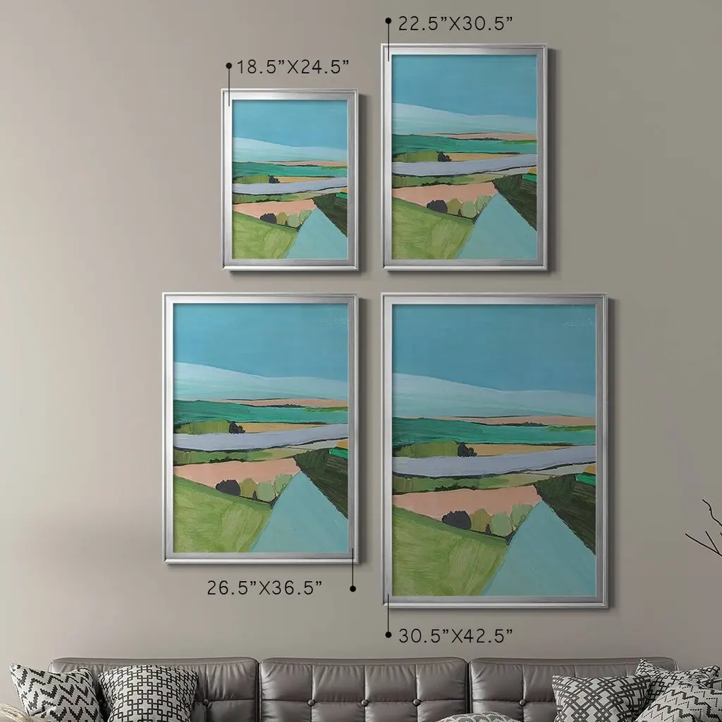 Bright Colored Countryside I Premium Framed Print - Ready to Hang A Premium Framed Print created to last. Framed in distressed wood and available in an array of sizes and colors Featuring a beveled a solid wood stretcher bar, each piece comes ready to hand 4 SIZES AVAILABLE 30.5''X42.5'' - Overall Size 26.5'X36.5'' - Overall Size 22.5''x30.5'' - Overall Size 18.5''x24.5'' - Overall Size Each piece is made to order. Each piece comes with hanging hardware. Made in the USA Ready to Hang