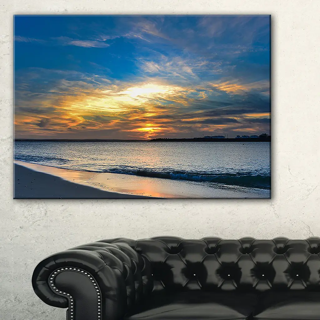 The Bright Colorful Sydney Sky Over Beach canvas art print is sure to make an impression on anyone who sees it. This artwork is gallery wrapped around a 1-inch solid wood frame and arrives carefully packaged and entirely ready to hang on the wall. Design Art only uses the highest resolution and pigments to ensure a crisp colorful print that is never faded or pixelated. This artwork is sure to be a conversation starter in any home or office.