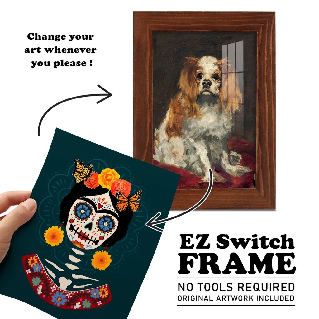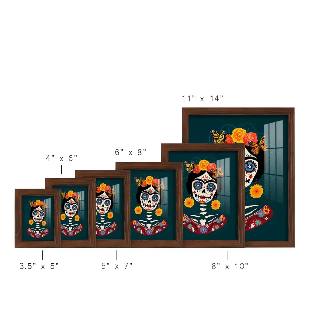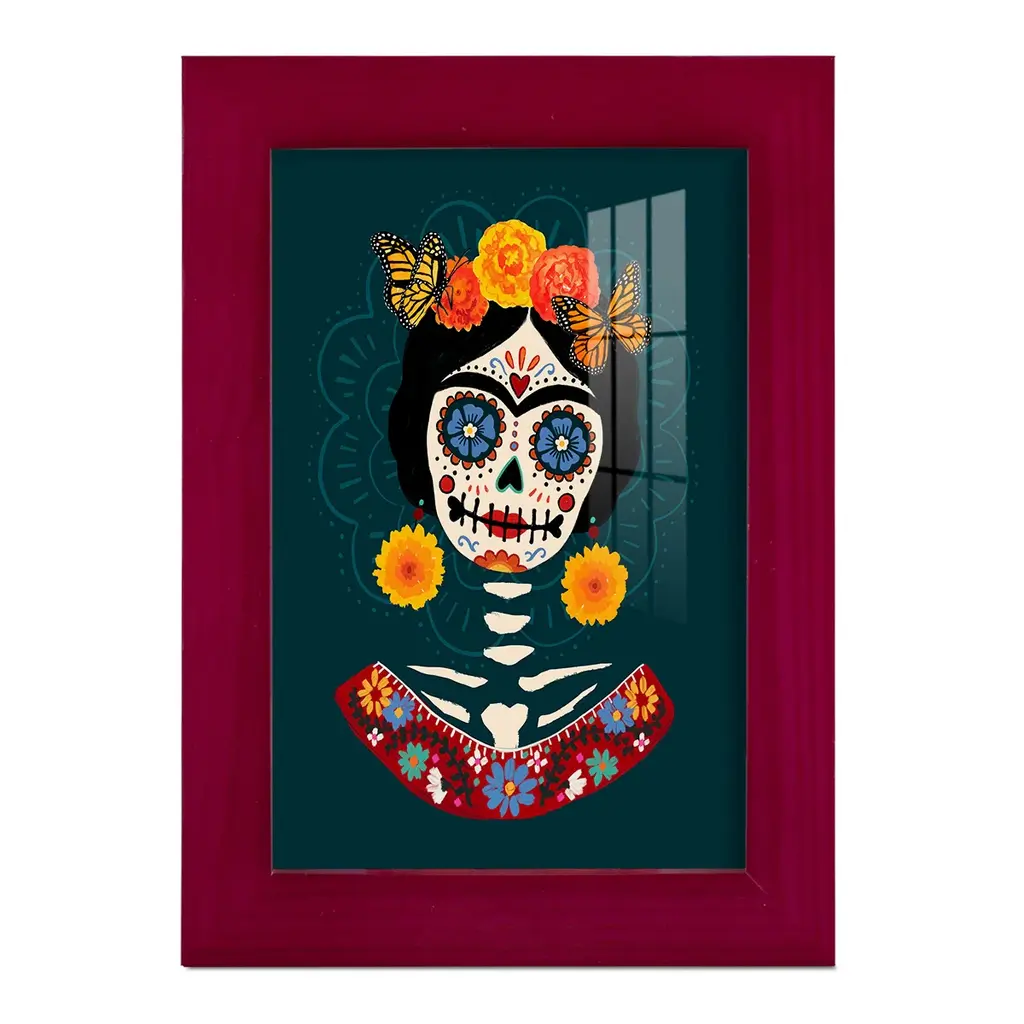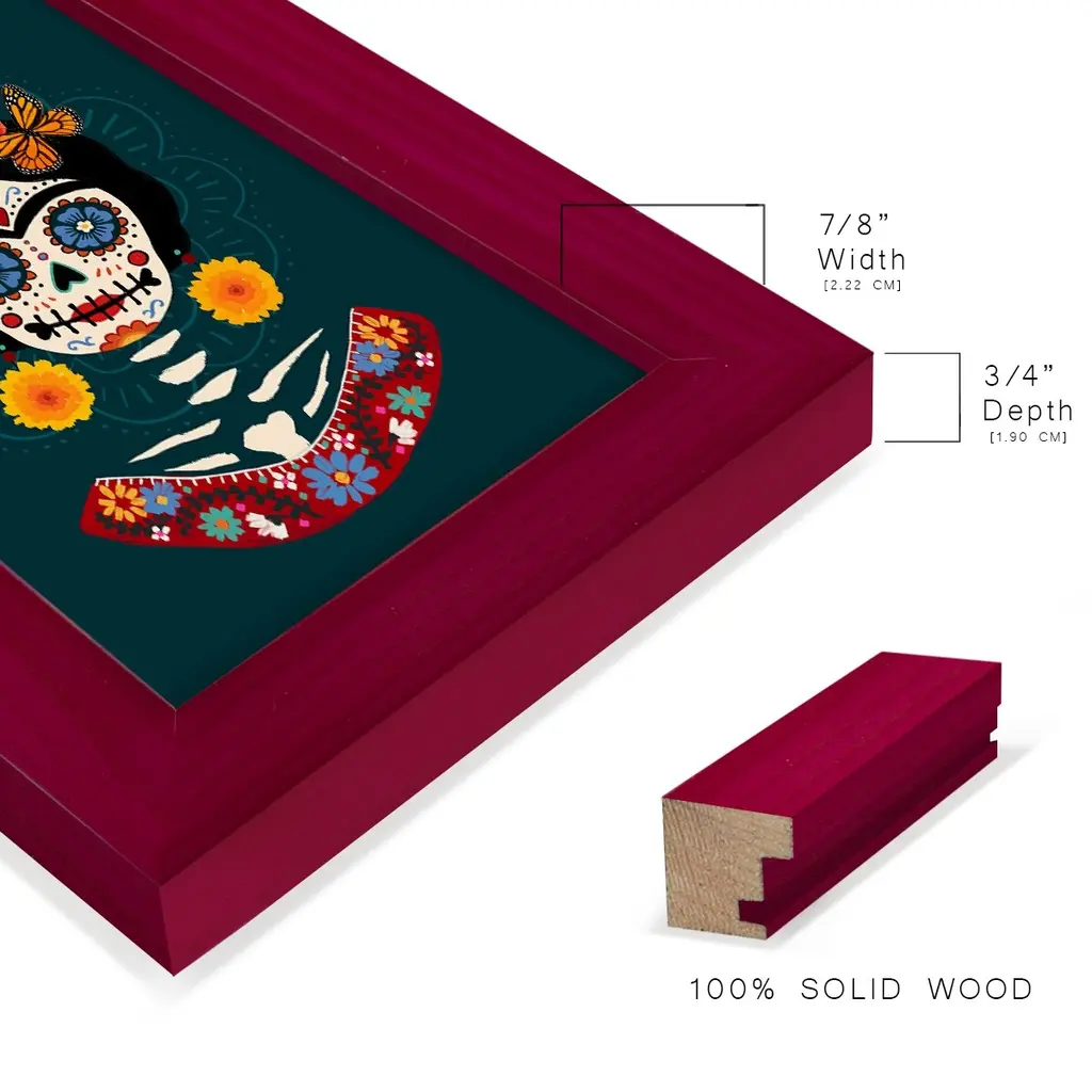 Bright Day of the Dead I -EZ SWITCH Framed Print w/glass-Cherry Red A delightful, framed print. Featuring a solid wood frame with real wood glass. This premium print is giclee quality. In addition, every frame features a removable back and table top stand. This allows you to change your art in the future or to just stand the art on a table for a new look. We are sure you'll enjoy our new series of EZ SWITCH Framed Art. Solid Wood Frame Real Glass Removable / Replaceable Art Built in Tabletop Stand Sizes range from 4x6 up to 12x15 - buy just one or pair them up as sets as you see fit.