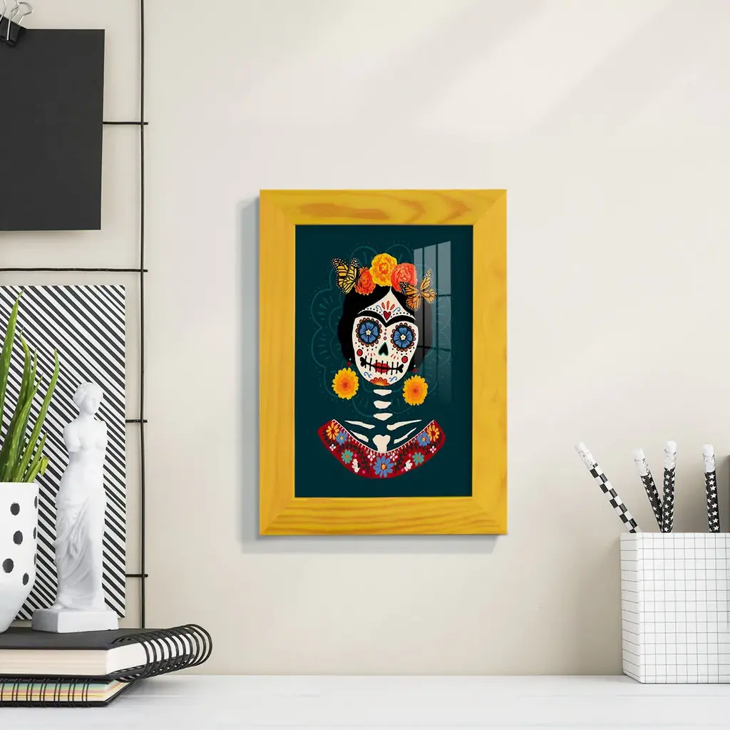 Bright Day of the Dead I -EZ SWITCH Framed Print w/glass-Cherry Red A delightful, framed print. Featuring a solid wood frame with real wood glass. This premium print is giclee quality. In addition, every frame features a removable back and table top stand. This allows you to change your art in the future or to just stand the art on a table for a new look. We are sure you'll enjoy our new series of EZ SWITCH Framed Art. Solid Wood Frame Real Glass Removable / Replaceable Art Built in Tabletop Stand Sizes range from 4x6 up to 12x15 - buy just one or pair them up as sets as you see fit.