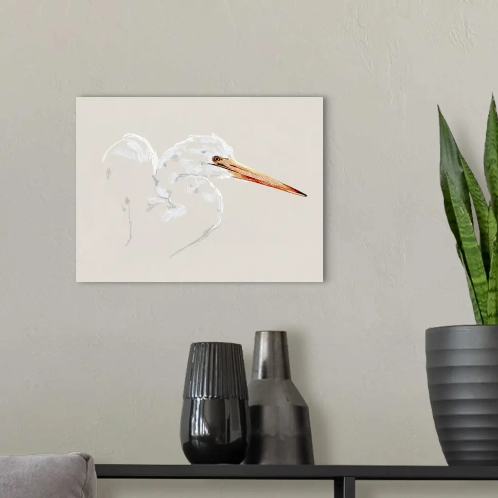 Bright Egret Sketch I wall art for home and office decor. Discover canvas art prints, photos, mural, big canvas art and framed wall art in GreatBigCanvas.com's varied collections.