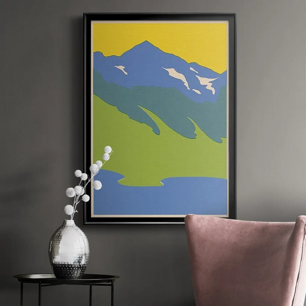 Bright Glacial Lake I Premium Framed Print - Ready to Hang A Premium Framed Print created to last. Framed in distressed wood and available in an array of sizes and colors Featuring a beveled a solid wood stretcher bar, each piece comes ready to hand 4 SIZES AVAILABLE 30.5''X42.5'' - Overall Size 26.5'X36.5'' - Overall Size 22.5''x30.5'' - Overall Size 18.5''x24.5'' - Overall Size Each piece is made to order. Each piece comes with hanging hardware. Made in the USA Ready to Hang