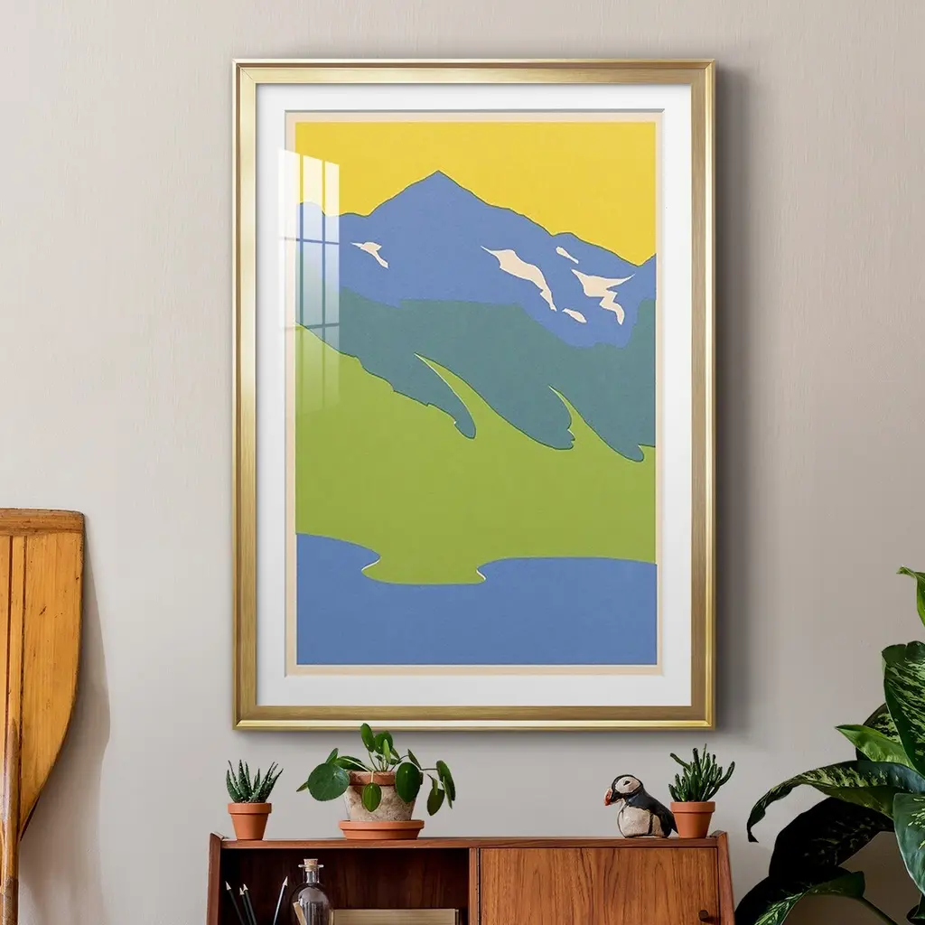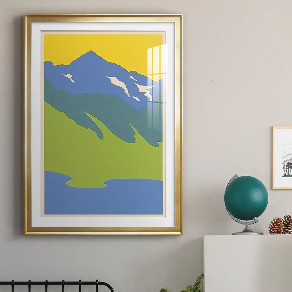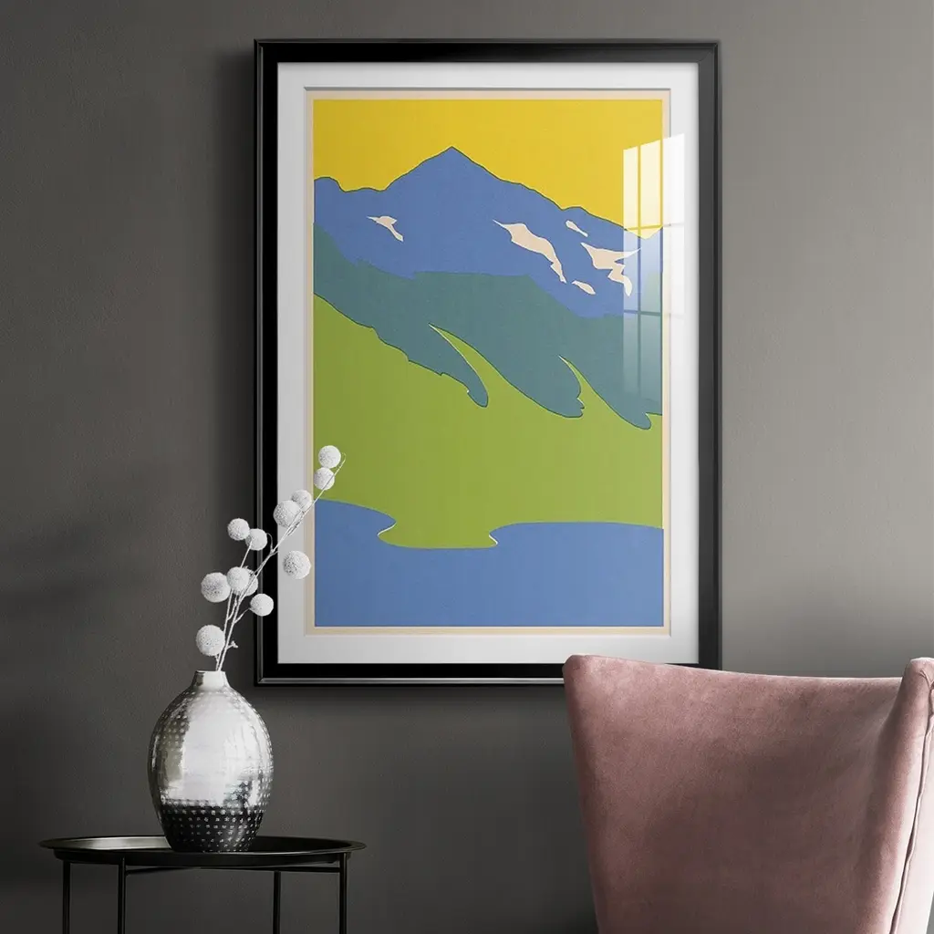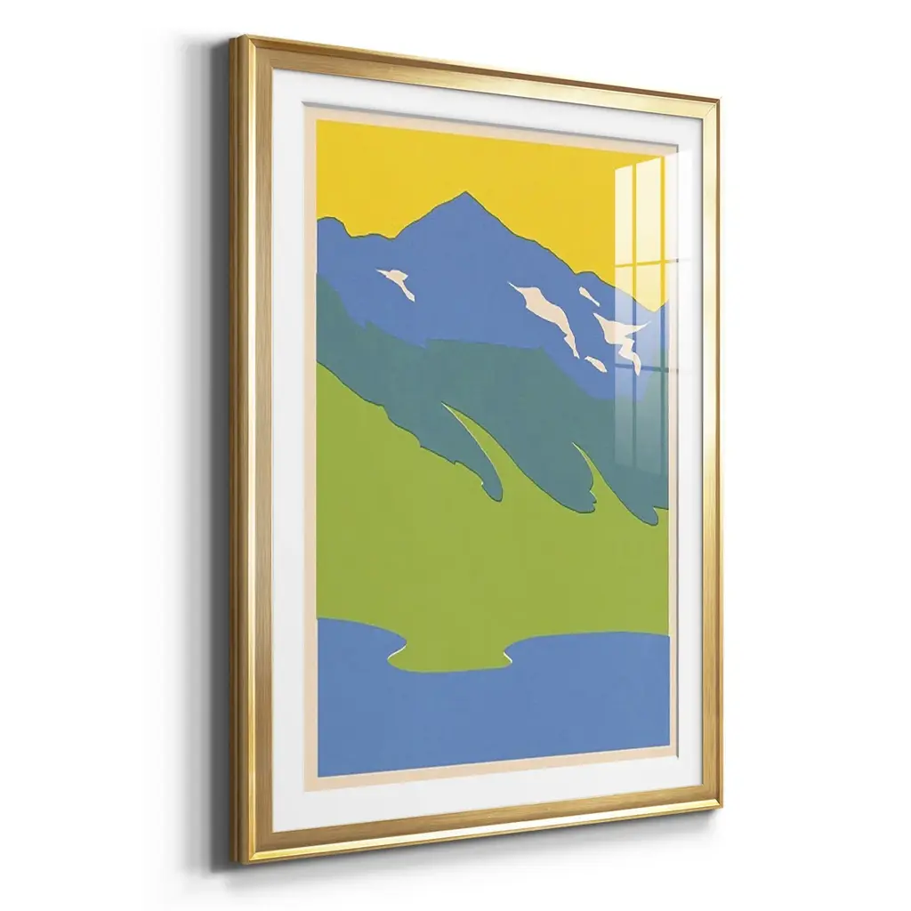 Bright Glacial Lake I Premium Framed Print - Ready to Hang A Premium Framed Print created to last. Framed in distressed wood and available in an array of sizes and colors Featuring a beveled a solid wood stretcher bar, each piece comes ready to hand 4 SIZES AVAILABLE 30.5''X42.5'' - Overall Size 26.5'X36.5'' - Overall Size 22.5''x30.5'' - Overall Size 18.5''x24.5'' - Overall Size Each piece is made to order. Each piece comes with hanging hardware. Made in the USA Ready to Hang Giclee Paper Print Acrylic Glass Beveled Matt Board