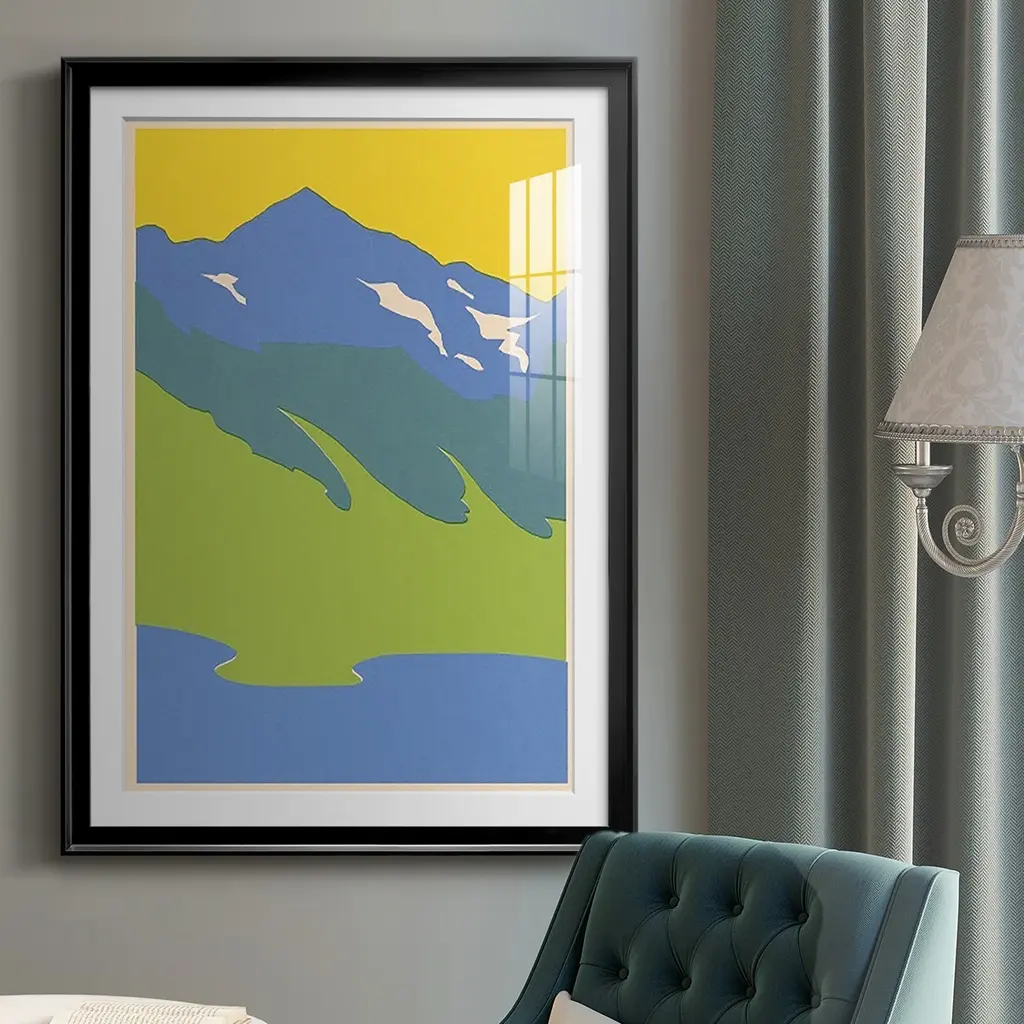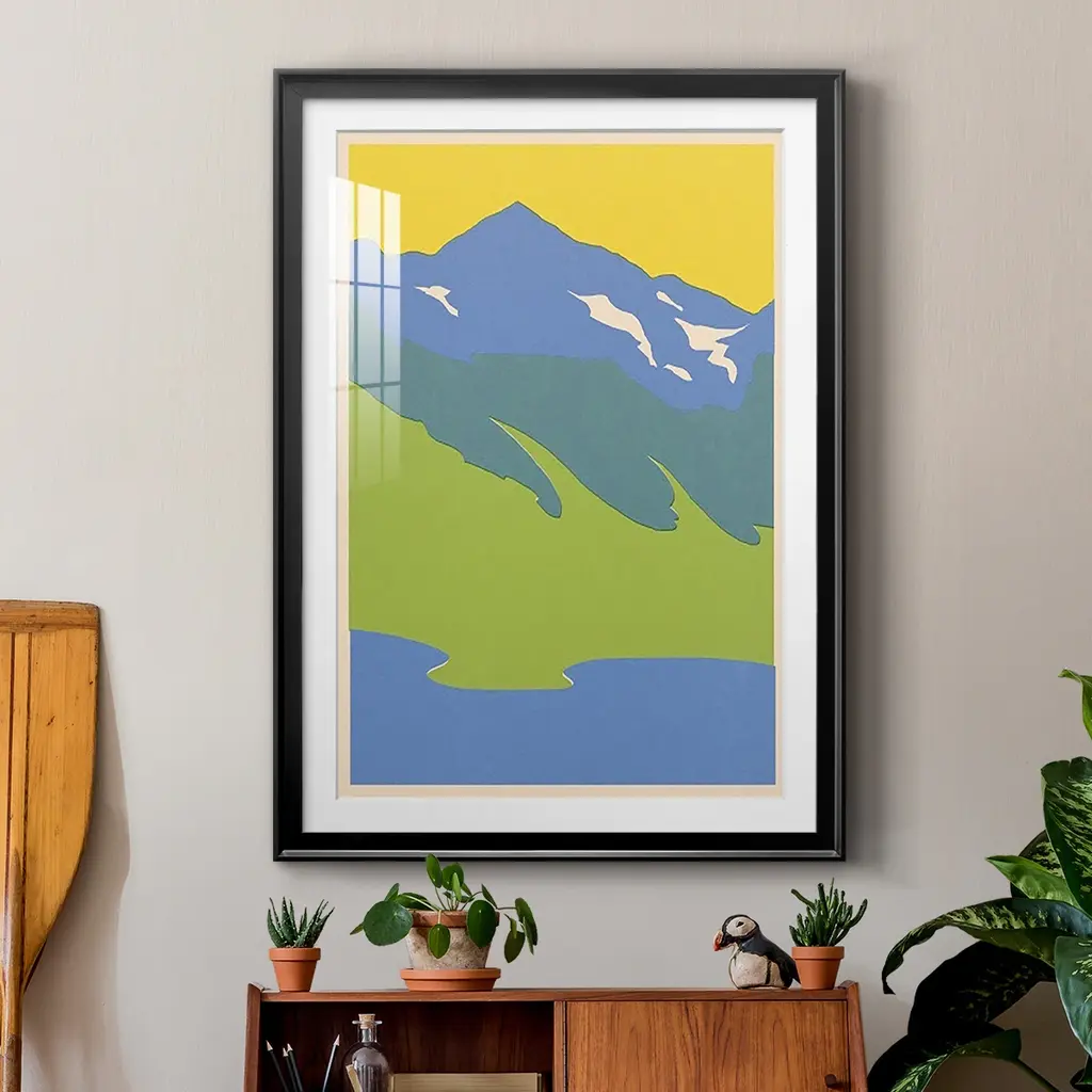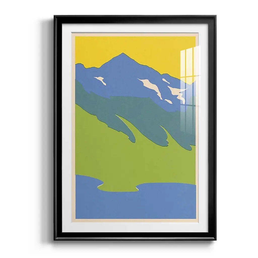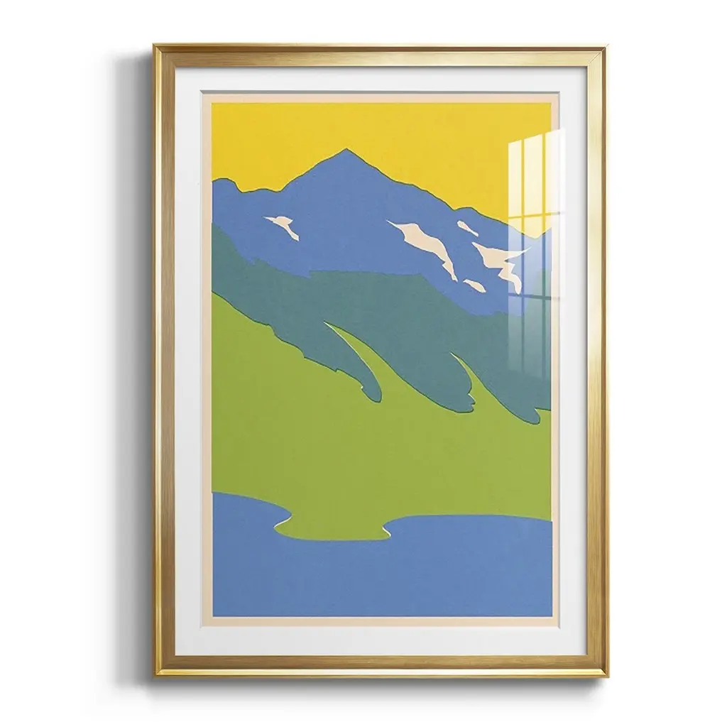 Bright Glacial Lake I Premium Framed Print - Ready to Hang A Premium Framed Print created to last. Framed in distressed wood and available in an array of sizes and colors Featuring a beveled a solid wood stretcher bar, each piece comes ready to hand 4 SIZES AVAILABLE 30.5''X42.5'' - Overall Size 26.5'X36.5'' - Overall Size 22.5''x30.5'' - Overall Size 18.5''x24.5'' - Overall Size Each piece is made to order. Each piece comes with hanging hardware. Made in the USA Ready to Hang Giclee Paper Print Acrylic Glass Beveled Matt Board