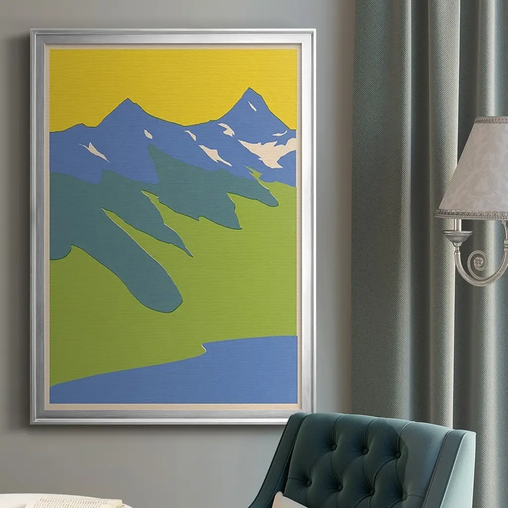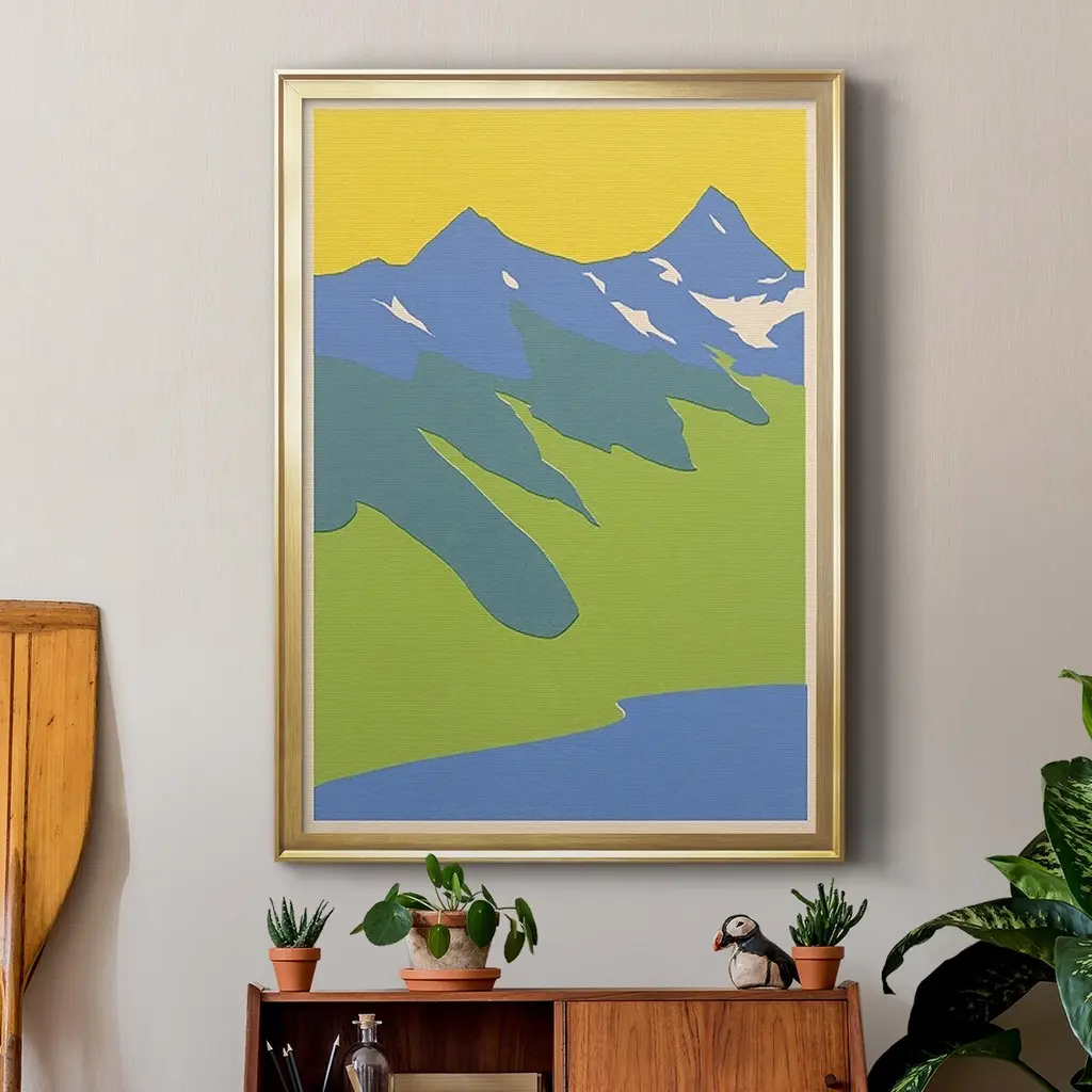 Bright Glacial Lake II Premium Framed Print - Ready to Hang A Premium Framed Print created to last. Framed in distressed wood and available in an array of sizes and colors Featuring a beveled a solid wood stretcher bar, each piece comes ready to hand 4 SIZES AVAILABLE 30.5''X42.5'' - Overall Size 26.5'X36.5'' - Overall Size 22.5''x30.5'' - Overall Size 18.5''x24.5'' - Overall Size Each piece is made to order. Each piece comes with hanging hardware. Made in the USA Ready to Hang