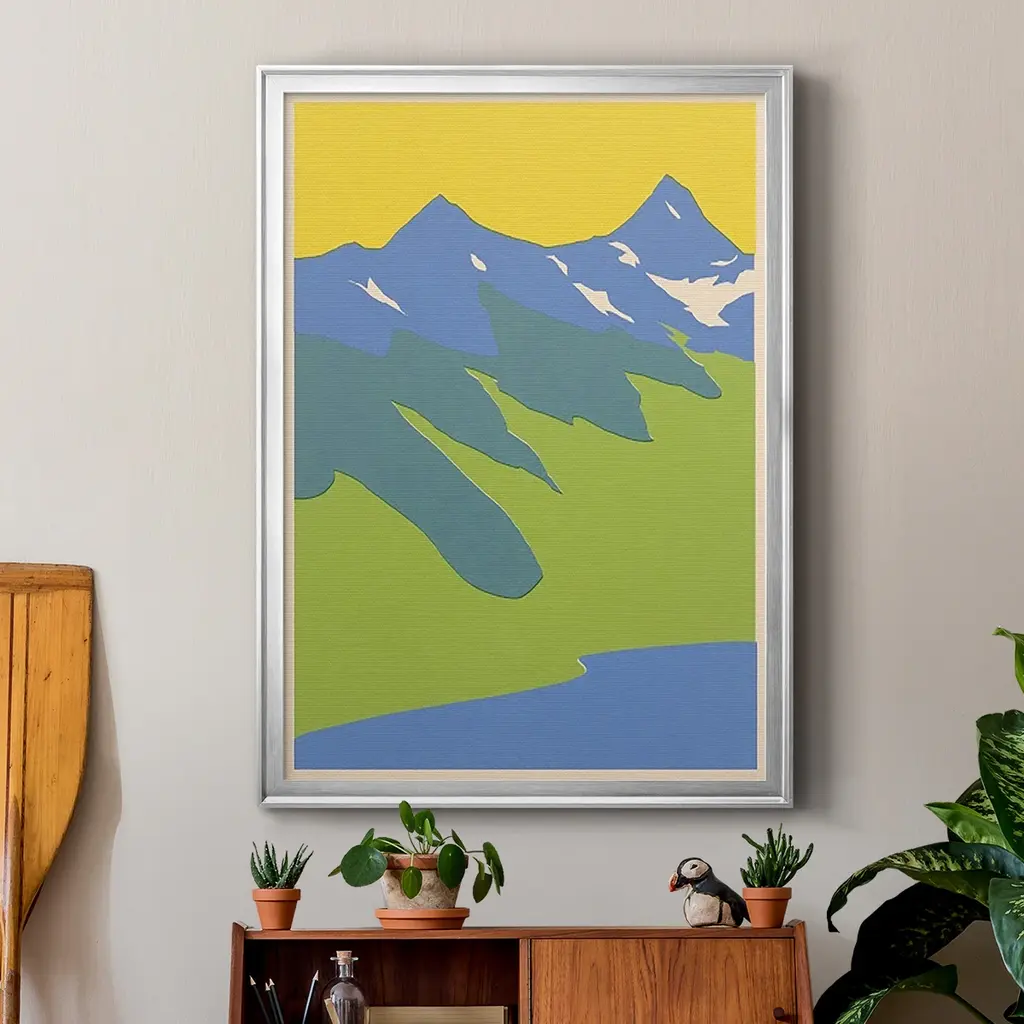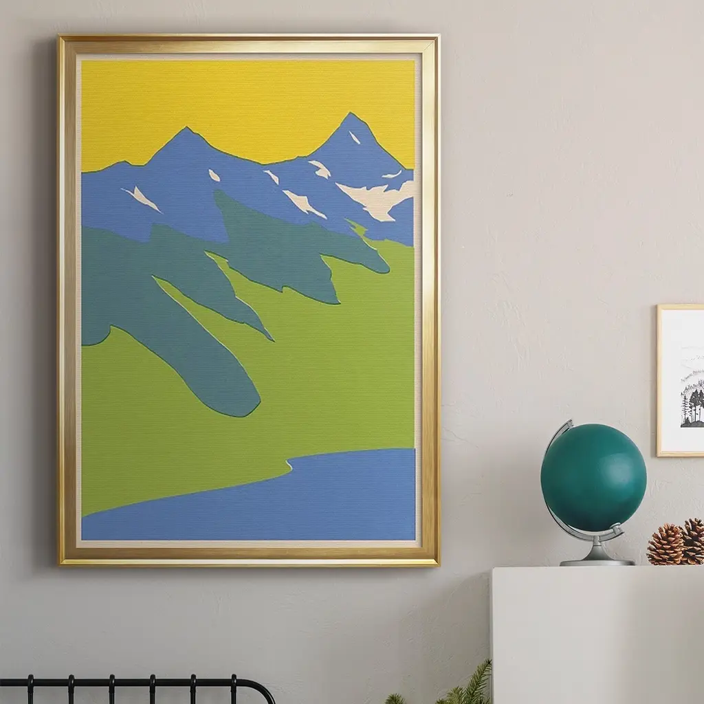 Bright Glacial Lake II Premium Framed Print - Ready to Hang A Premium Framed Print created to last. Framed in distressed wood and available in an array of sizes and colors Featuring a beveled a solid wood stretcher bar, each piece comes ready to hand 4 SIZES AVAILABLE 30.5''X42.5'' - Overall Size 26.5'X36.5'' - Overall Size 22.5''x30.5'' - Overall Size 18.5''x24.5'' - Overall Size Each piece is made to order. Each piece comes with hanging hardware. Made in the USA Ready to Hang