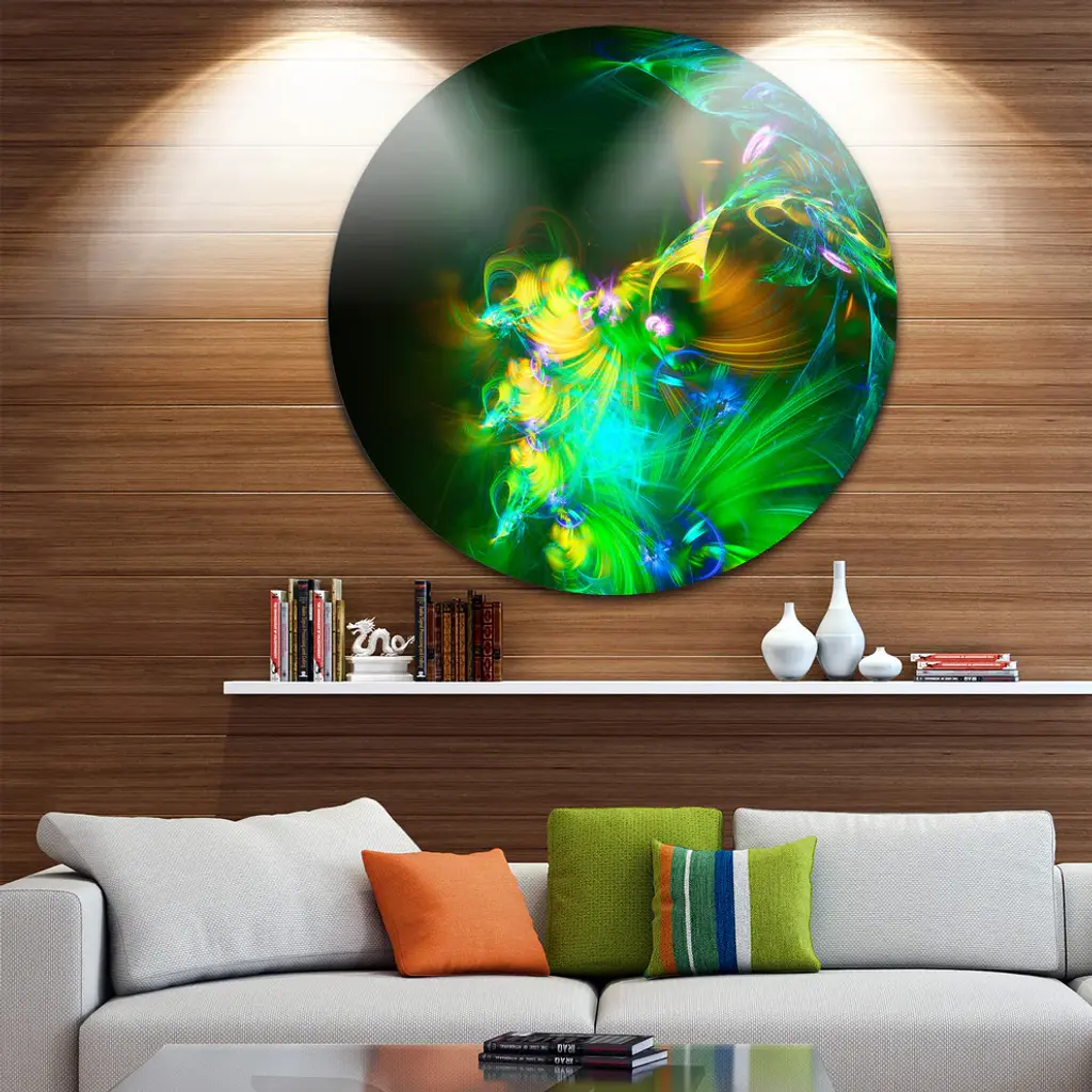 Bright Green Fractal Flower In Dark, Abstract Disc Metal Wall Art, 23"