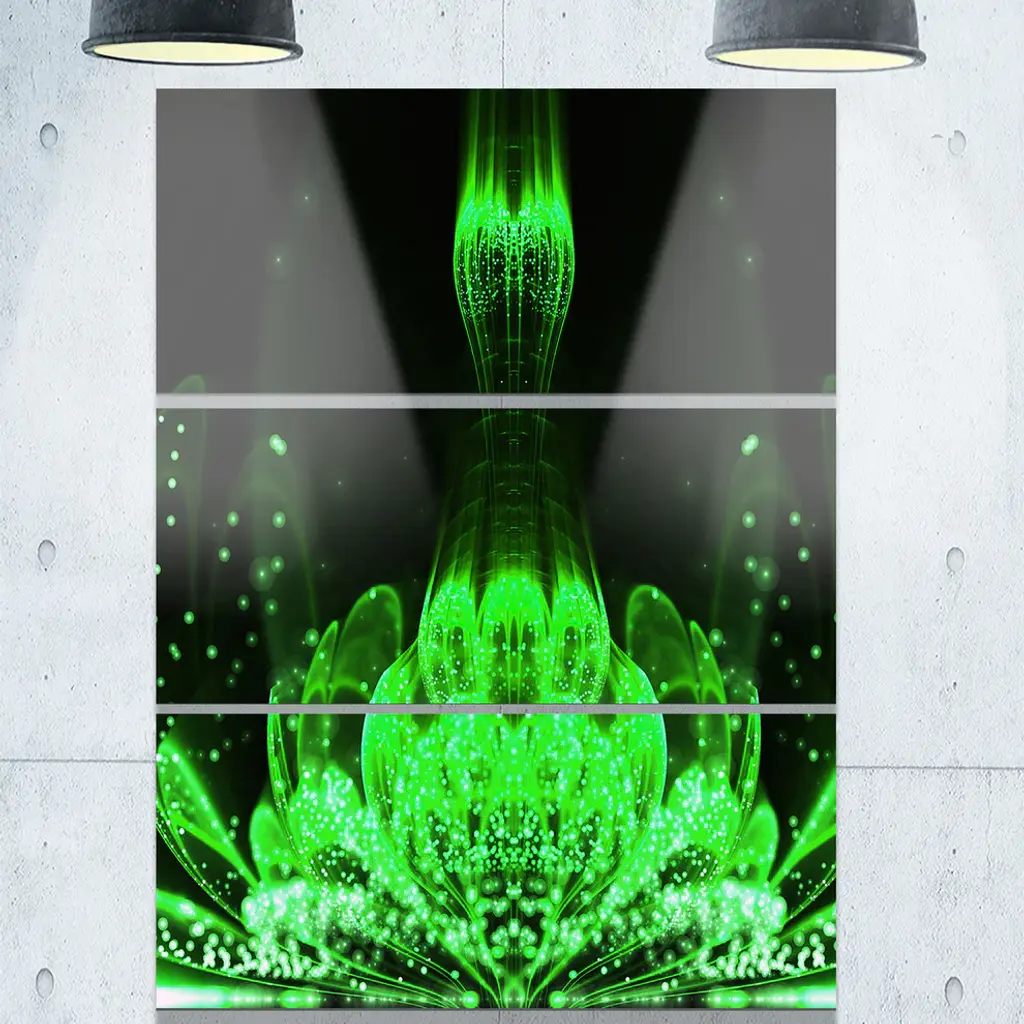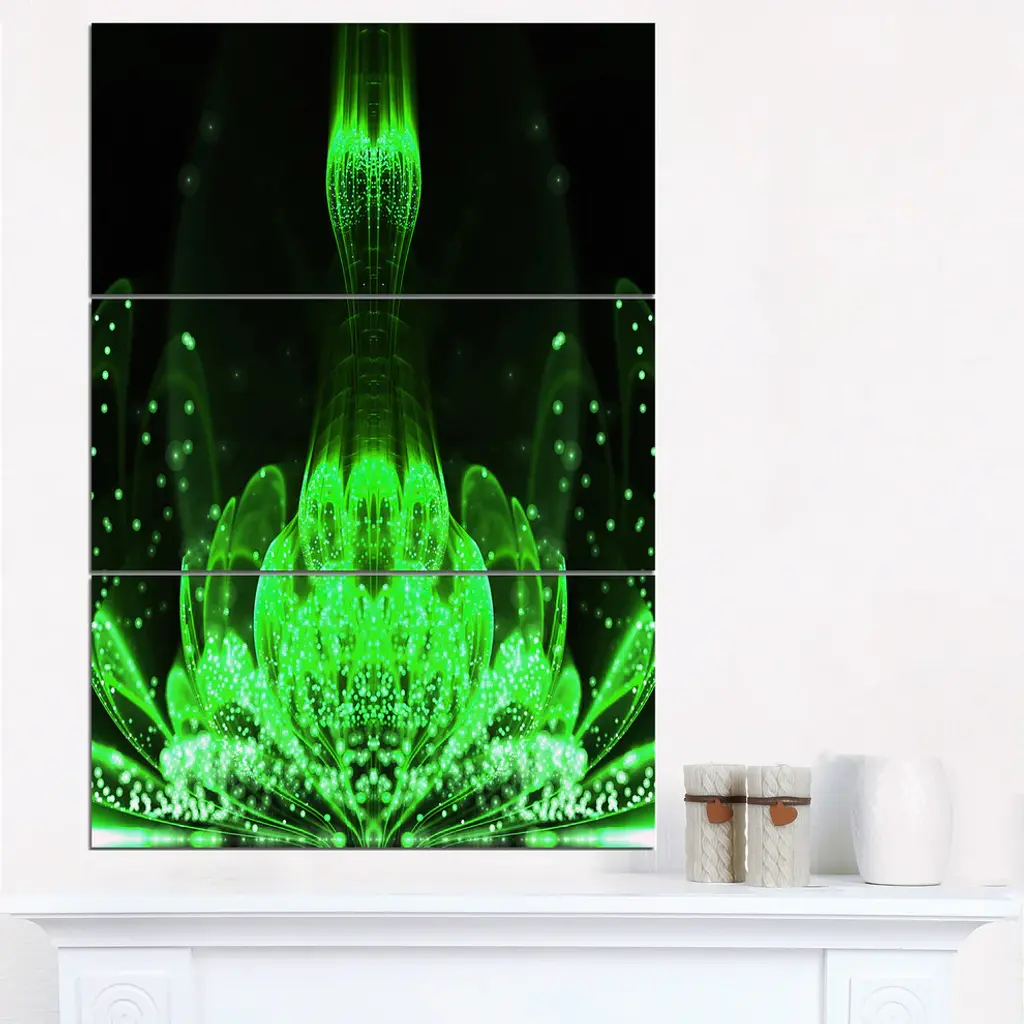 "Bright Green Fractal Flower" Metal Wall Art, 3 Panels, 28"x36"