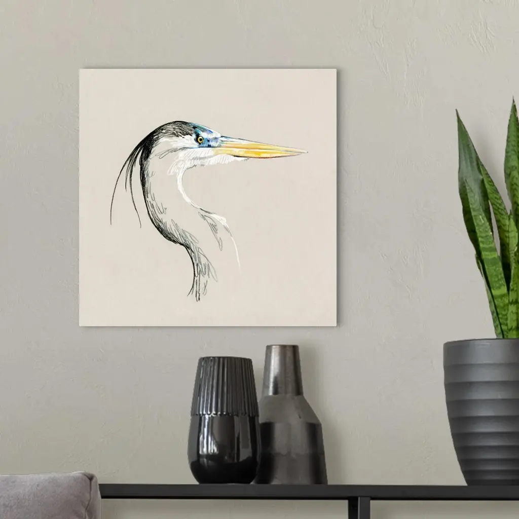 Bright Heron Sketch I wall art for home and office decor. Discover canvas art prints, photos, mural, big canvas art and framed wall art in GreatBigCanvas.com's varied collections.