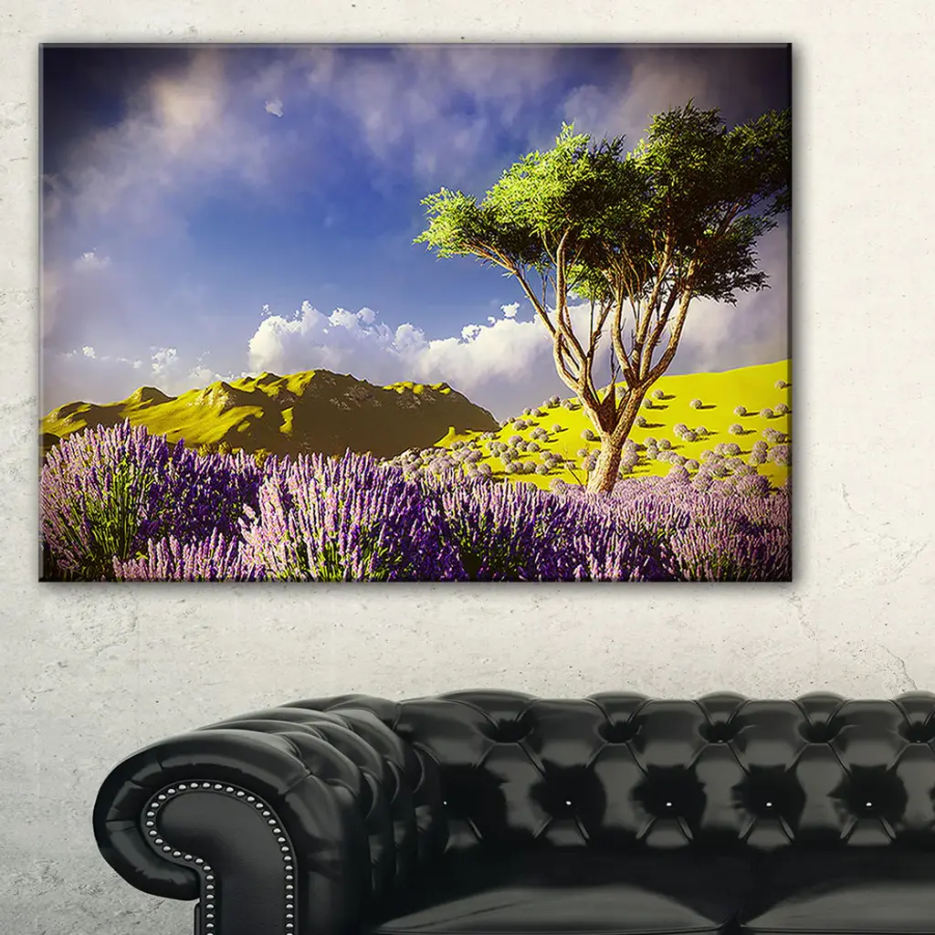 The Bright Lavender Garden Field canvas art print is sure to make an impression on anyone who sees it. This artwork is gallery wrapped around a 1-inch solid wood frame and arrives carefully packaged and entirely ready to hang on the wall. Design Art only uses the highest resolution and pigments to ensure a crisp colorful print that is never faded or pixelated. This artwork is sure to be a conversation starter in any home or office.