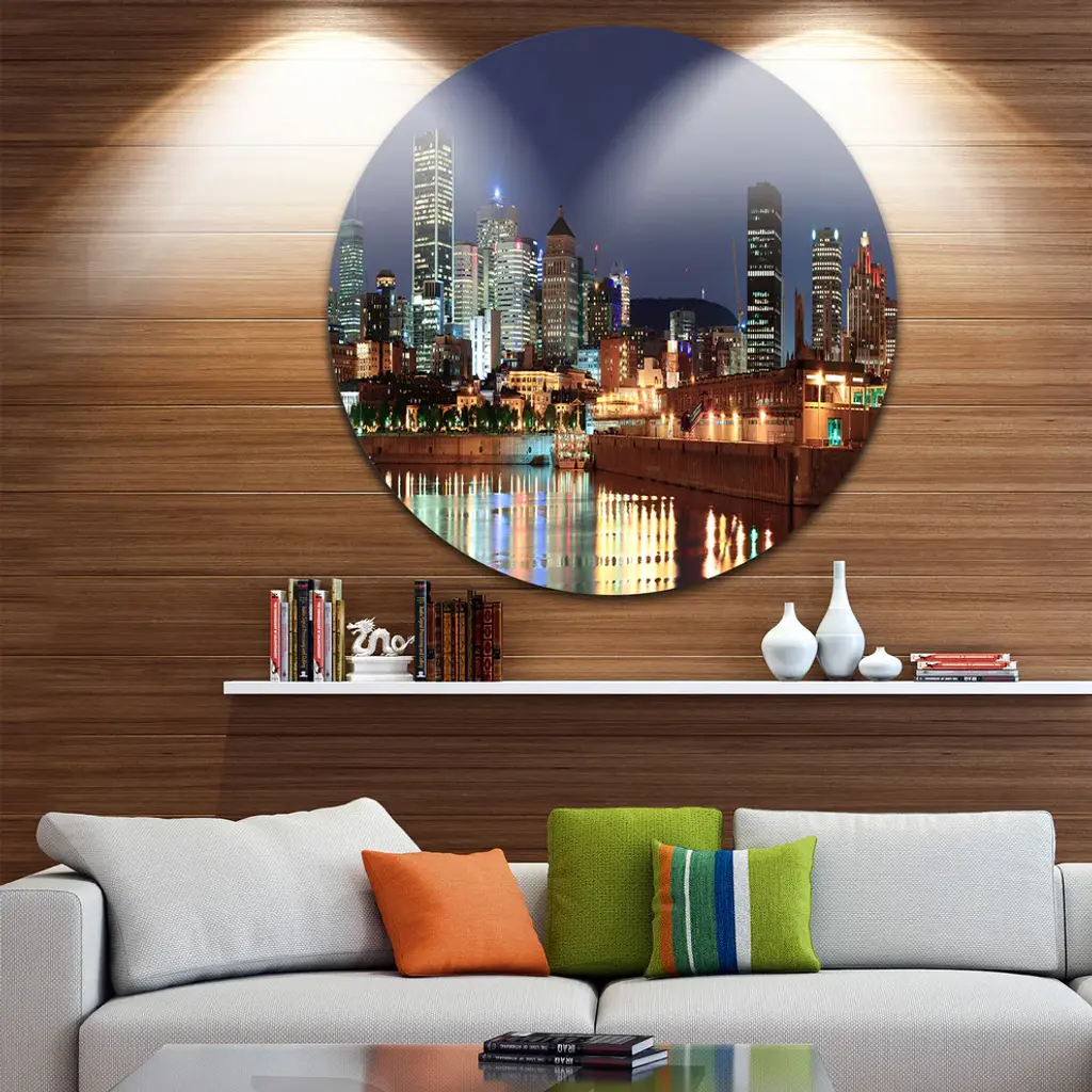 Bright Montreal At Dusk, Cityscape Photography Disc Metal Wall Art, 36"