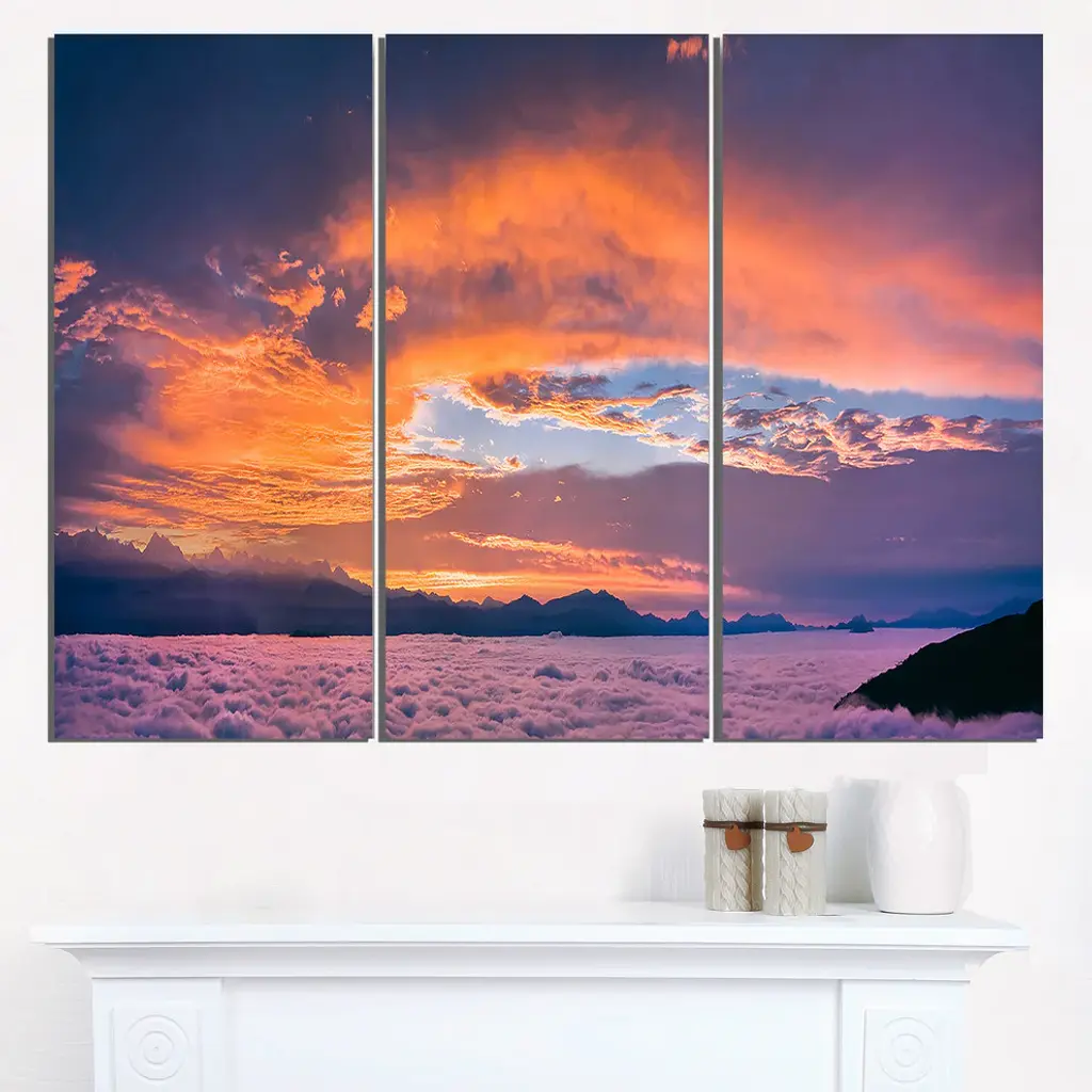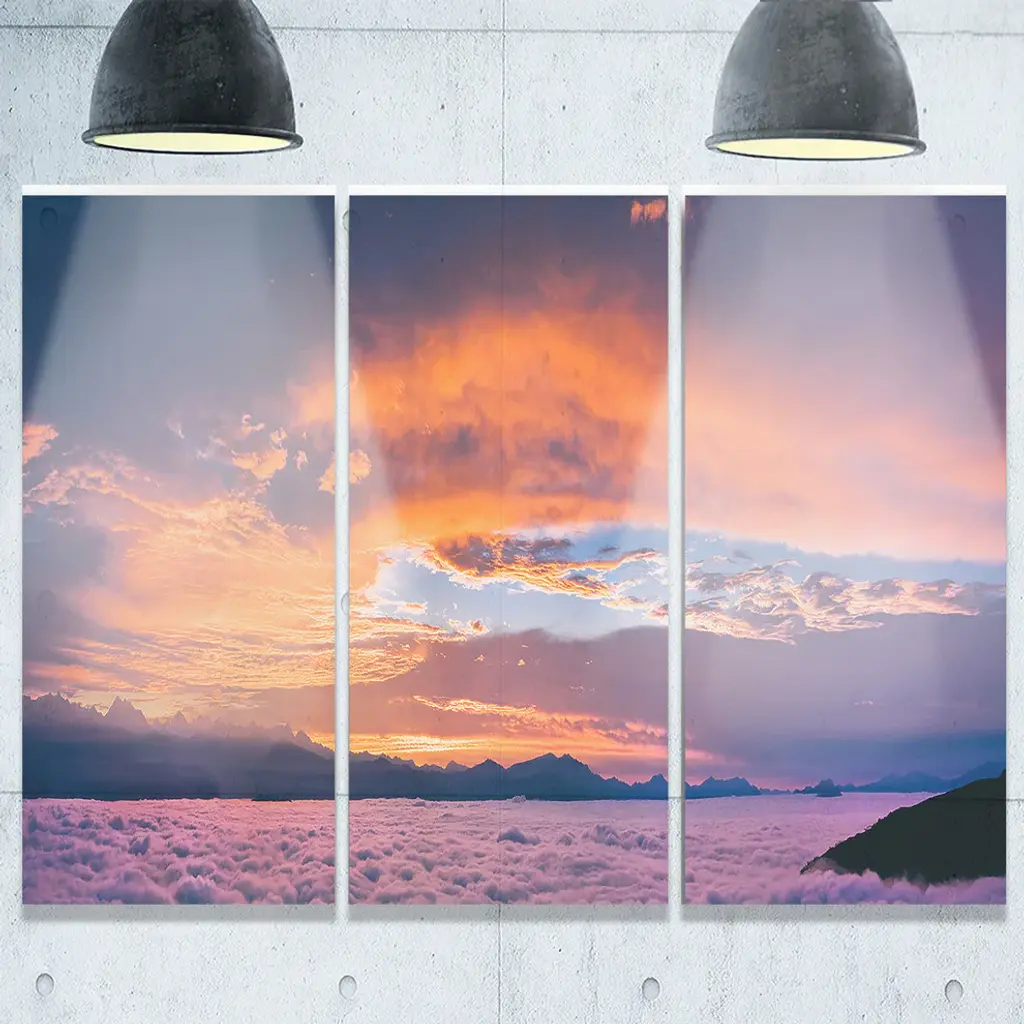"Bright Panoramic Sunset Over Sea" Metal Landscape, 3 Panels, 36"x28"