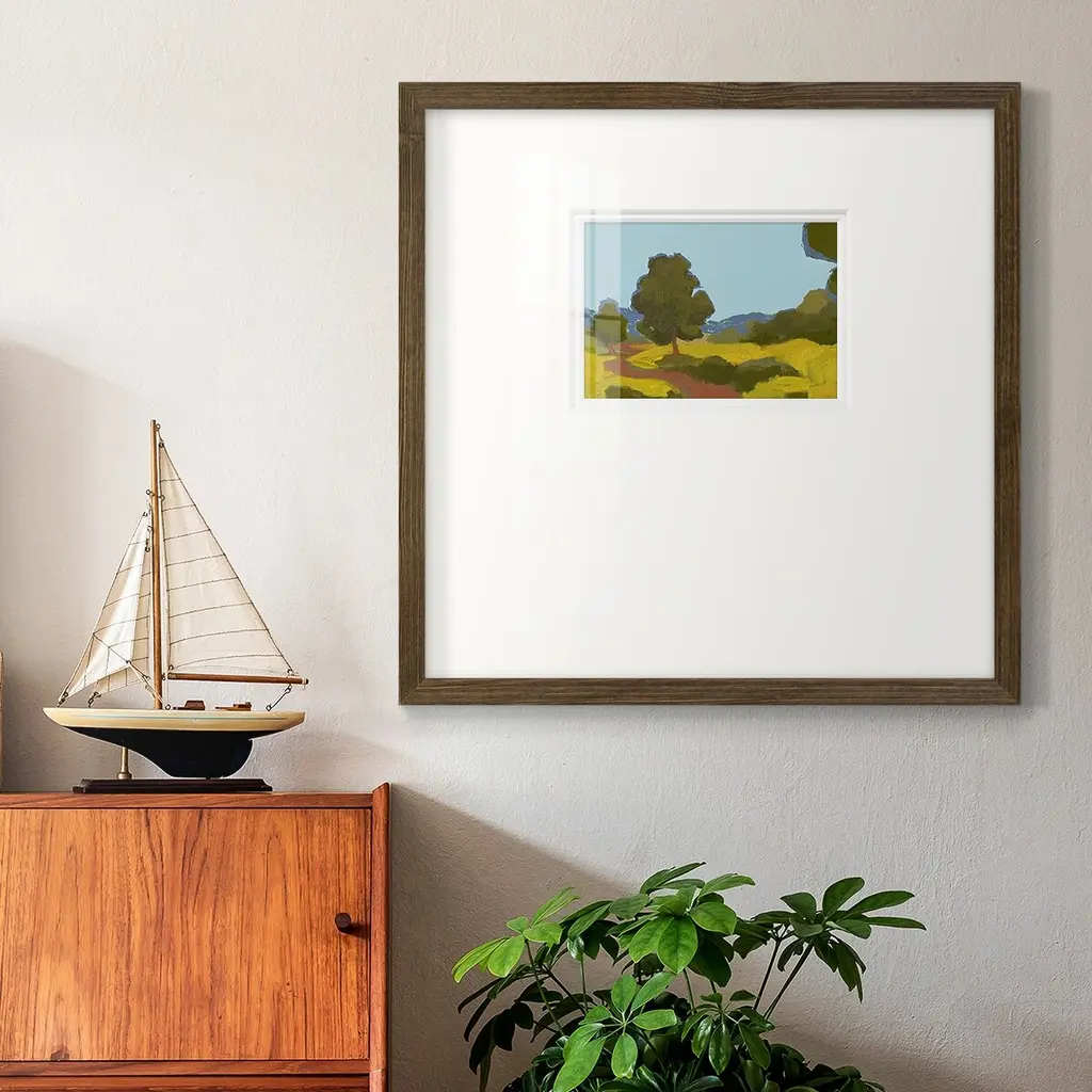 Bright Park IPremium Framed Print A framed cold pressed paper print featuring superior double matting and quality frame. 2 SIZES AVAILABLE 16''X16''' - Overall Size 20''X20''' - Overall Size Each piece is made to order. Each piece comes with hanging hardware. Made in the USA Ready to Hang Giclee Paper Print Plexiglass Beveled Matt Board Double Matte Board