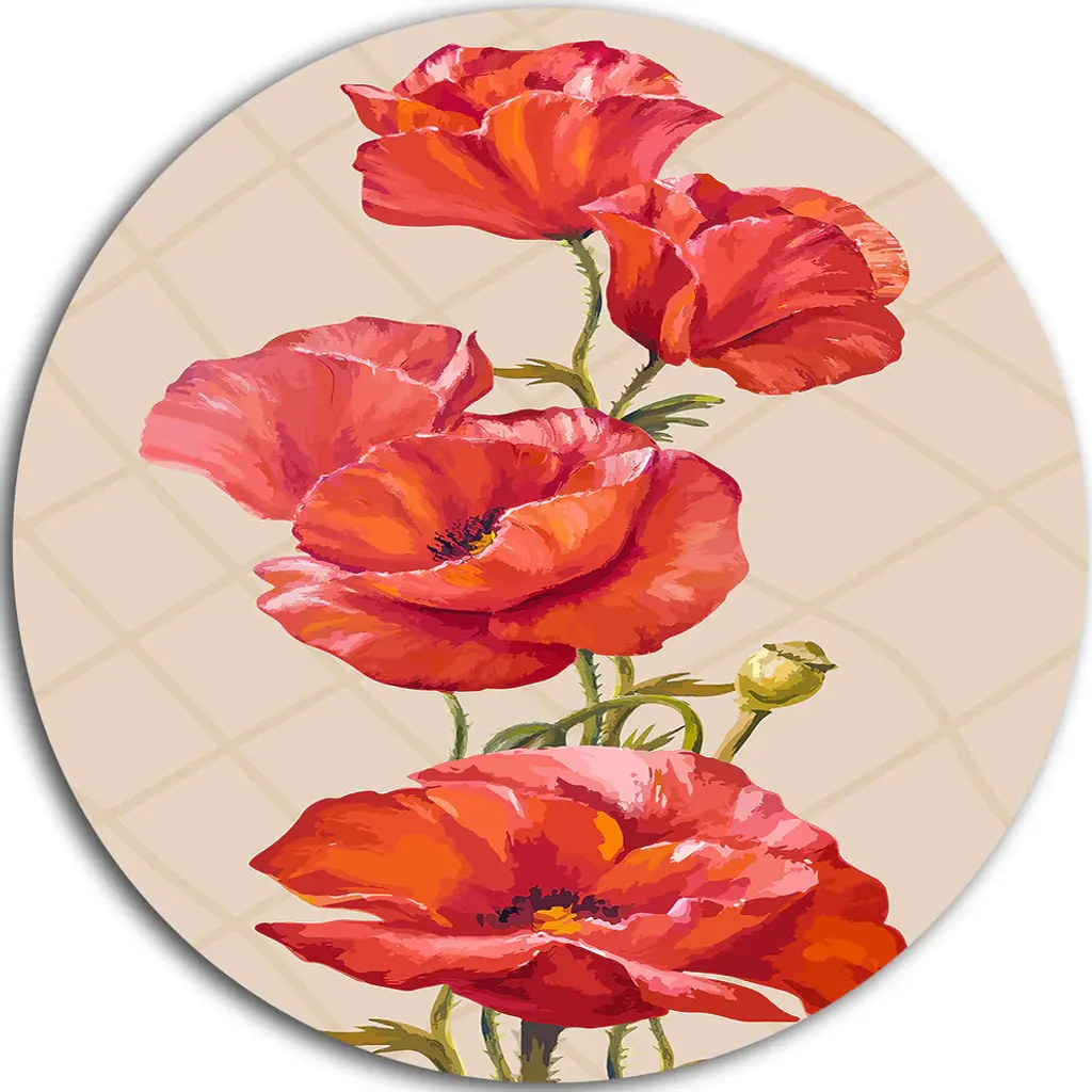 Bright Poppies Flower, Floral Round Metal Wall Art, 11"