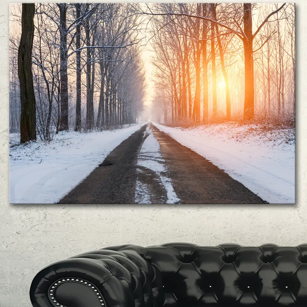 Bright Sun Break In Winter Forest, Large Forest Canvas Art Print, 60"x28"