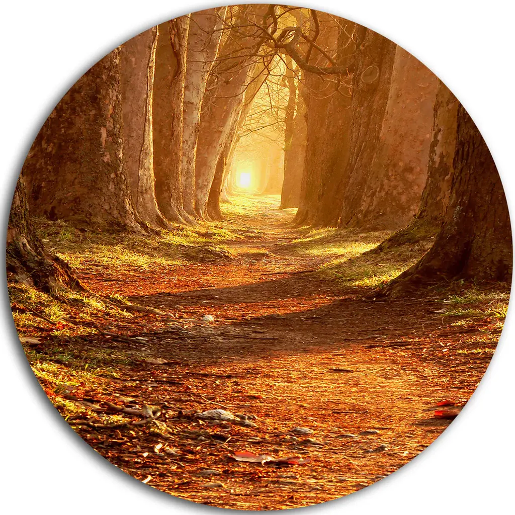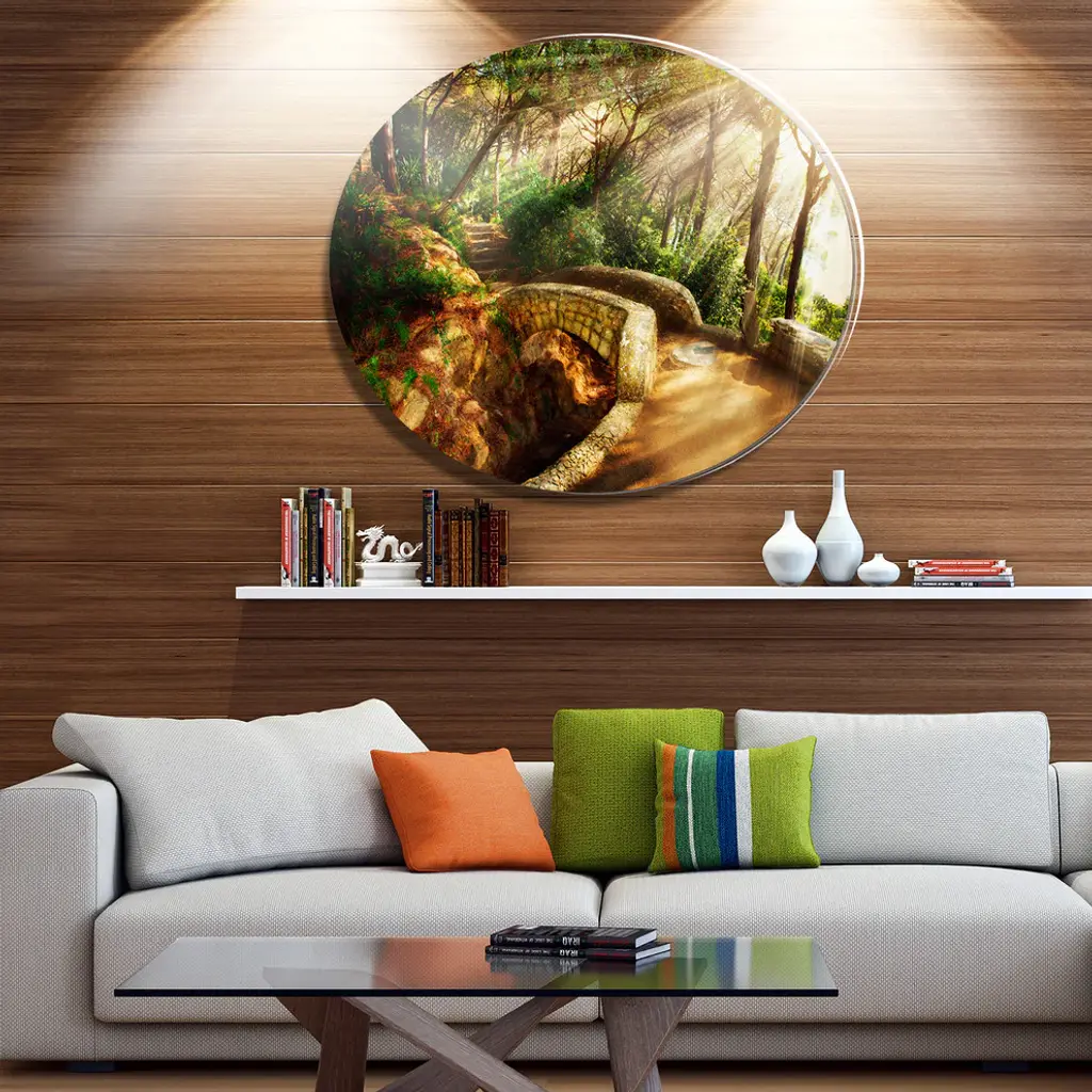 Bright Sun In Mystical Park, Landscape Disc Metal Artwork, 36"