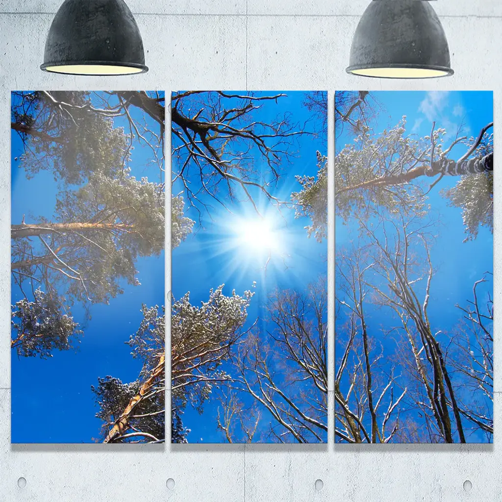 "Bright Sun In The Tree Top Circle" Forest Metal Wall Art, 3 Panels, 36"x28"