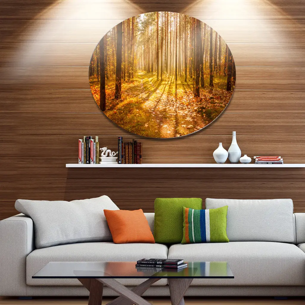 Bright Sunlight In Yellow Fall Forest, Forest Round Wall Art, 23"