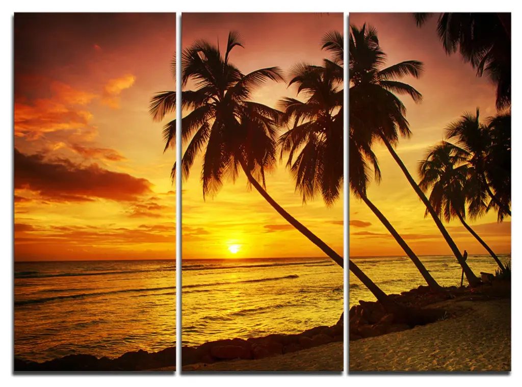 "Bright Sunset At Barbados Island" Metal Wall Art, 3 Panels, 36"x28"