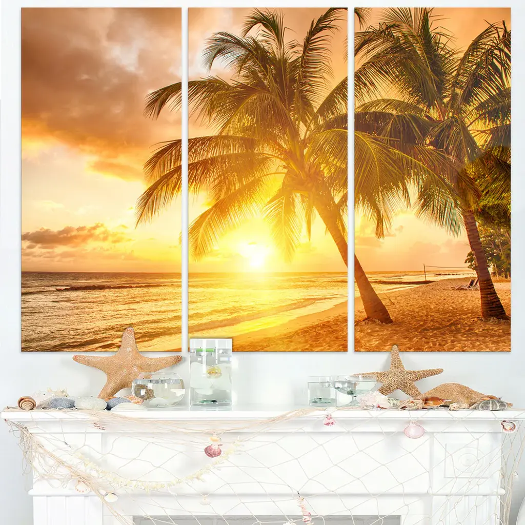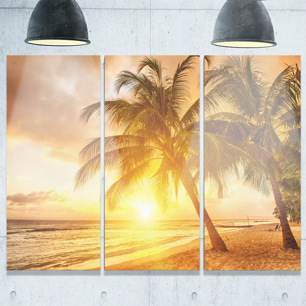 "Bright Sunset At Barbados Island" Metal Wall Art, 3 Panels, 36"x28"