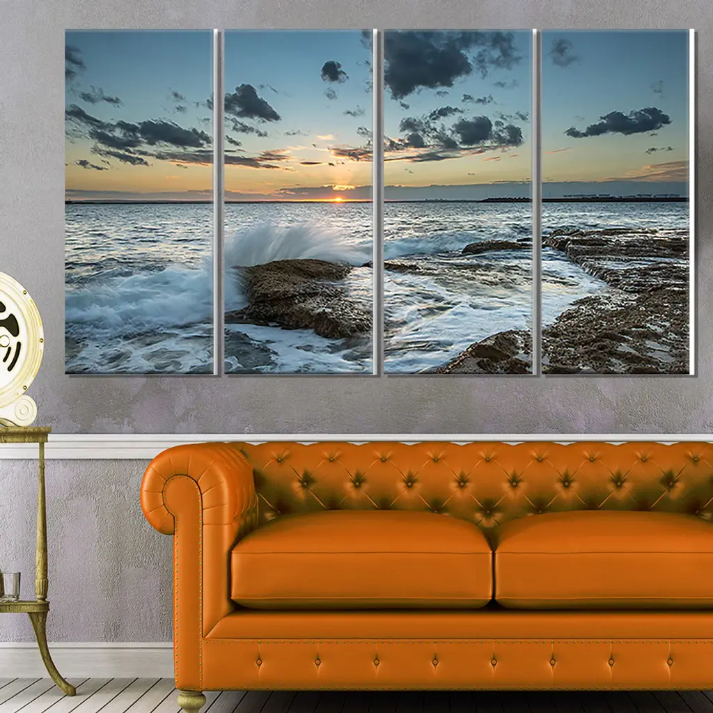 "Bright Sydney Sunset Over Sea" Canvas Print, 4 Panels