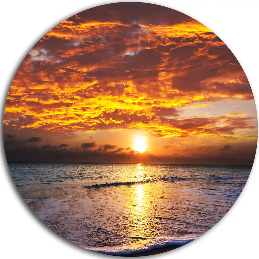 Bright Yellow Sunset Over Lake, Seashore Round Wall Art, 11"